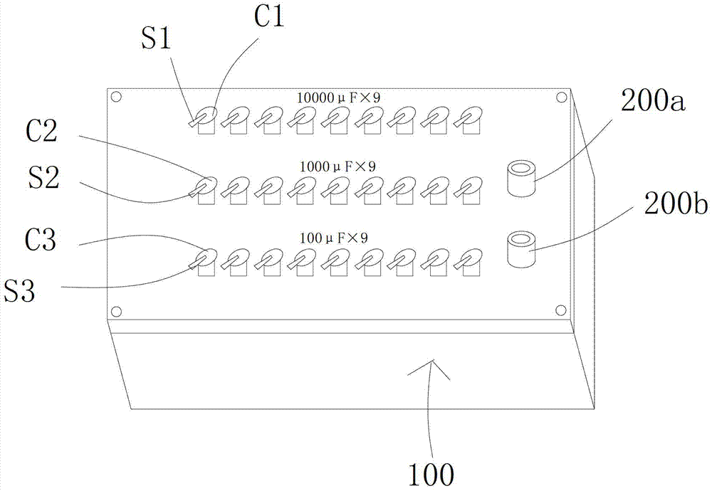 本实用新型公开了一种可调电容盒,其特征在于,包括一盒体,所述盒体上设置有两接线柱,所述盒体内并接有若干不同电容值的电容器,每一电容器上设置有一开关,每一电容器的两引脚分别并接在两接线柱上。本实用新型的有益效果在于:可以根据不同的使用需要启闭不同电容值的电容器,操作方便,只需将电路两端接在接线柱上,打开所需使用电容器的开关即可。