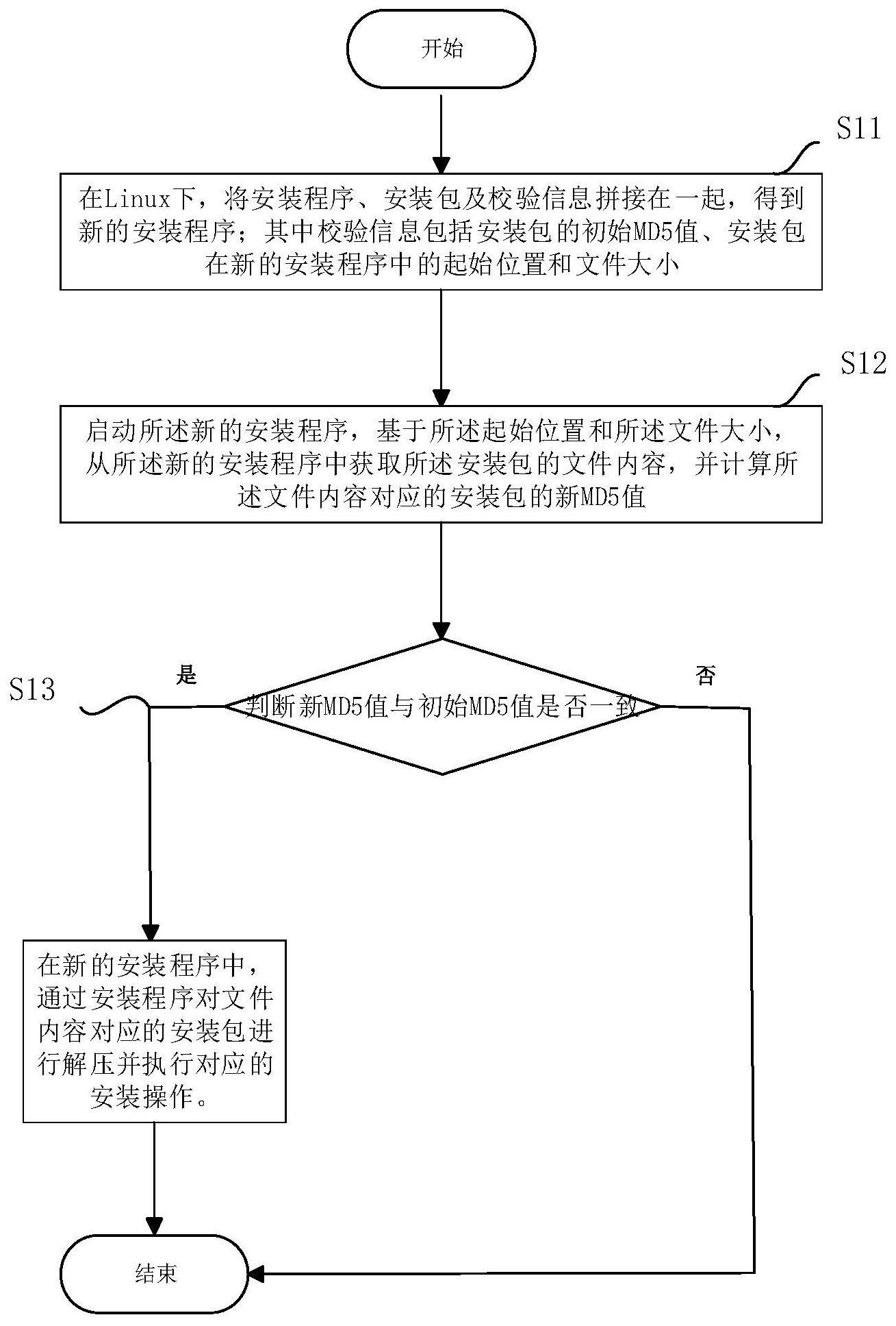 本申请的目的是提供一种基于Linux的软件部署方法及设备,通过将安装程序、安装包和校验信息拼接在一起,得到新的安装程序,新的安装程序在启动时会通过安装程序先获取校验信息的内容进行校验,校验通过后,安装程序对安装包进行解压并执行对应的安装操作,实现了将安装程序、安装包及校验信息拼接在一起,即三合一,防止黑客等非法分子对安装程序、安装包及校验信息中的任何一项进行篡改,实现了从源头上杜绝存在的安全问题,不仅使安装过程更为简单,同时还能够保证安装过程的数据安全性。