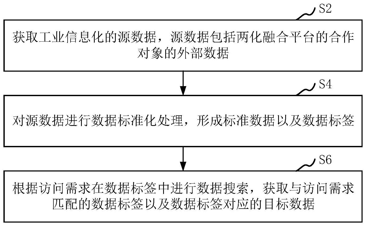 本申请涉及一种两化融合平台以及方法。两化融合平台,包括:两化融合资源池,用于获取工业信息化的源数据,源数据包括两化融合平台的服务对象的需求源数据以及成果源数据,服务对象包括信息需求方与成果供应方;采集处理层,用于对源数据进行数据标准化处理,形成标准数据,标准数据包括需求数据以及成果数据,需求数据形成需求大厅,成果数据形成成果大厅;应用支撑层,用于根据服务对象对需求大厅或者成果大厅的浏览选择,获取目标数据,并根据目标数据生成订单信息;综合展示层,用于展示需求大厅、成果大厅、目标数据以及订单信息。本申请可以实现了需求方与供应方的技术对接,推进了两化融合的传播与应用。