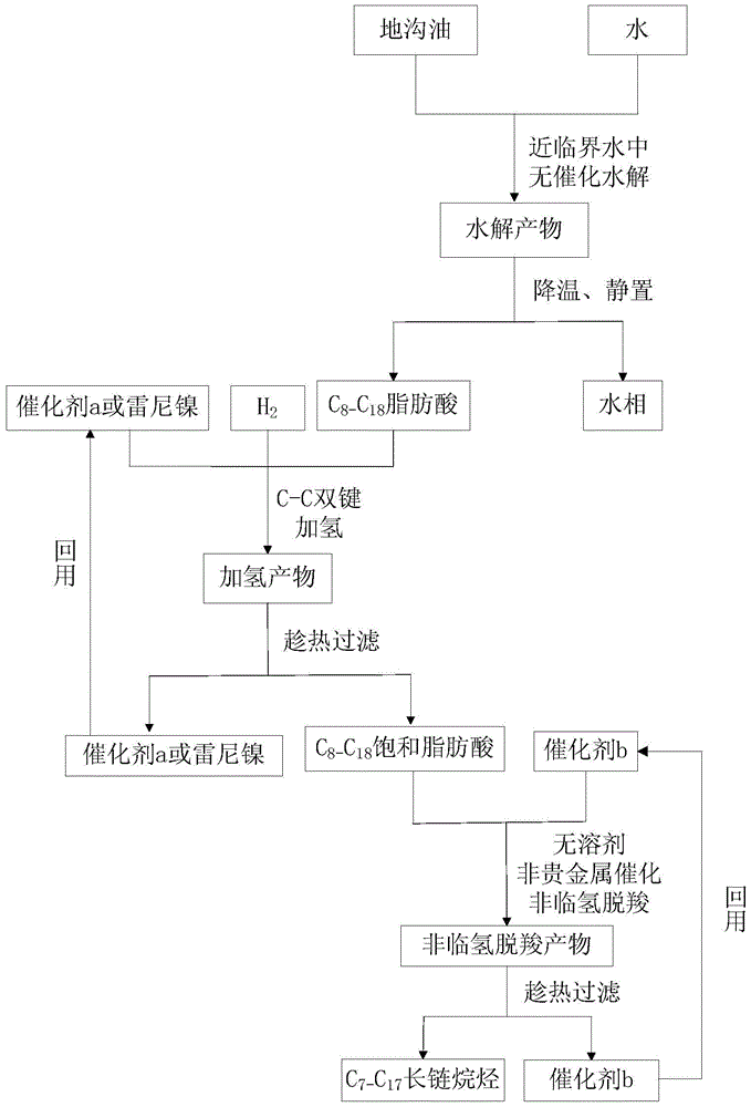 一种以地沟油为原料低氢耗制备长链烷烃的方法