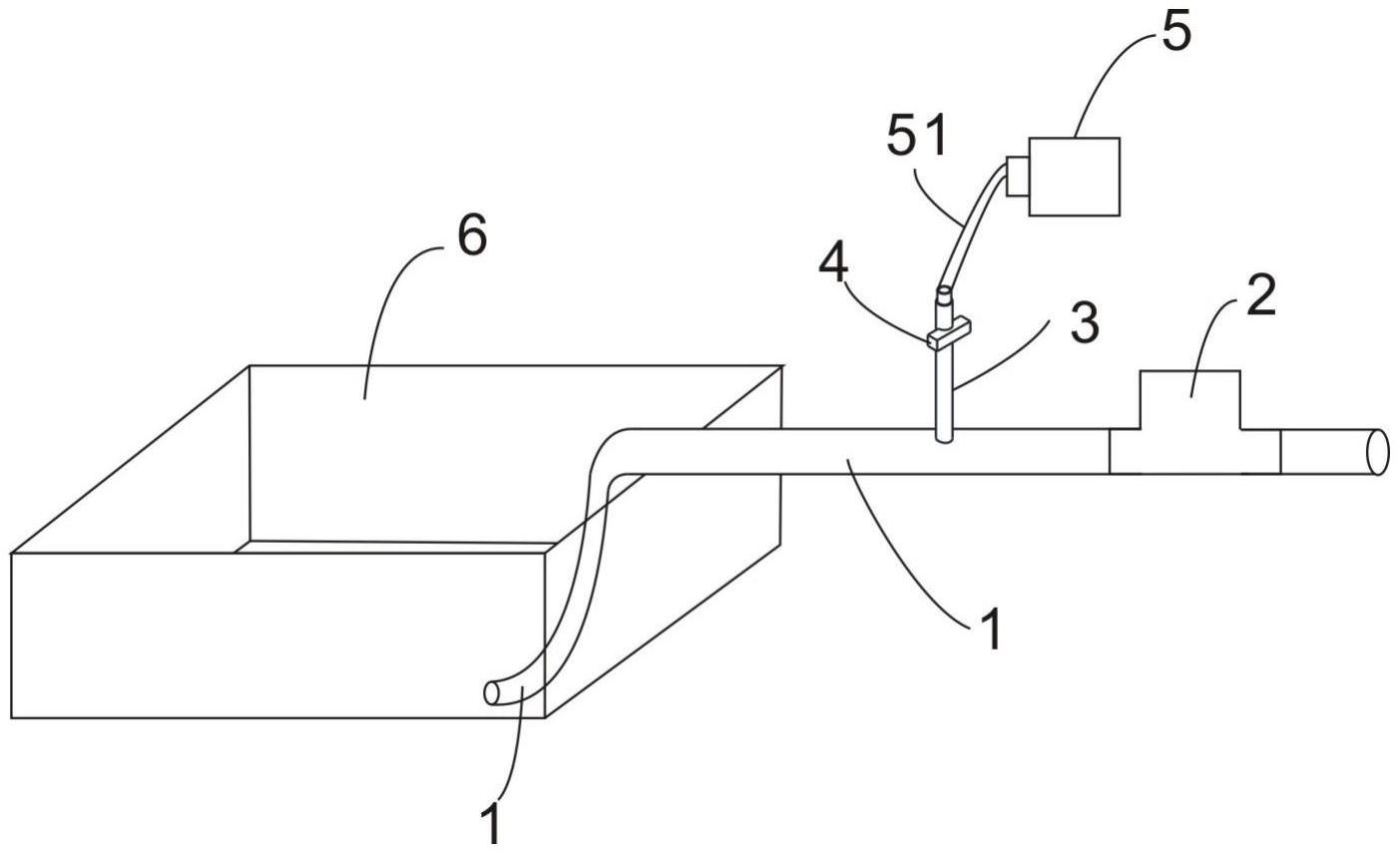 本实用新型公开了一种沉淀池抽泥管道堵塞处理装置,其包括:抽泥管道,所述抽泥管道的一部分安装于沉淀池底部,所述抽泥管道的另一部分延伸出形成延伸端;泵,抽泥管道的延伸端与所述泵的一端连通,所述泵的另一端与污泥池连通;支管,所述支管固定安装在延伸出的抽泥管道上,所述支管与所述抽泥管道相连通;电池阀,所述电池阀安装在所述支管上,压缩空气机,其压缩空气管可拆卸地连通于所述支管的末端。本实用新型能够减少管道堵塞的处理时间,提高处理效率。