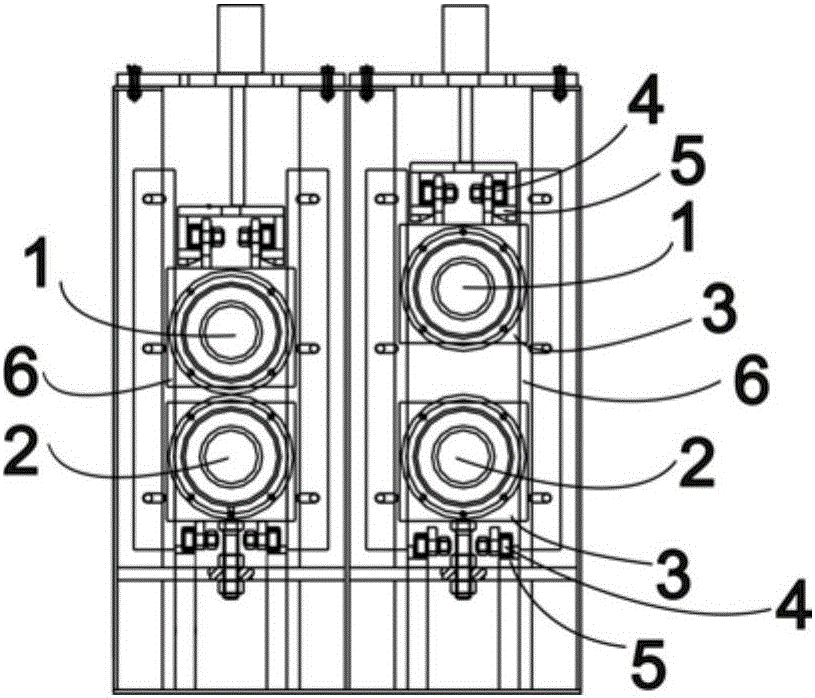 本实用新型公开了一种挤干辊换辊装置,包括上挤干辊、下挤压辊、轴承座、导轮、导轨、槽体和推车,所述槽体内上下放置所述上挤干辊和所述下挤压辊,所述上挤压辊和所述下挤压辊的中轴的两端均固定所述轴承座,所述轴承座固定所述导轮,所述导轮接触在所述导轨上,换辊状态下,所述上挤干辊或所述下挤压辊在所述推车的牵拉下,所述导轮在所述导轨上滑动。本挤干辊换辊装置通过导轮、导轨、推车的配合,在空间有限的地方也可以省力、速度的进行换辊,减少工作时间。