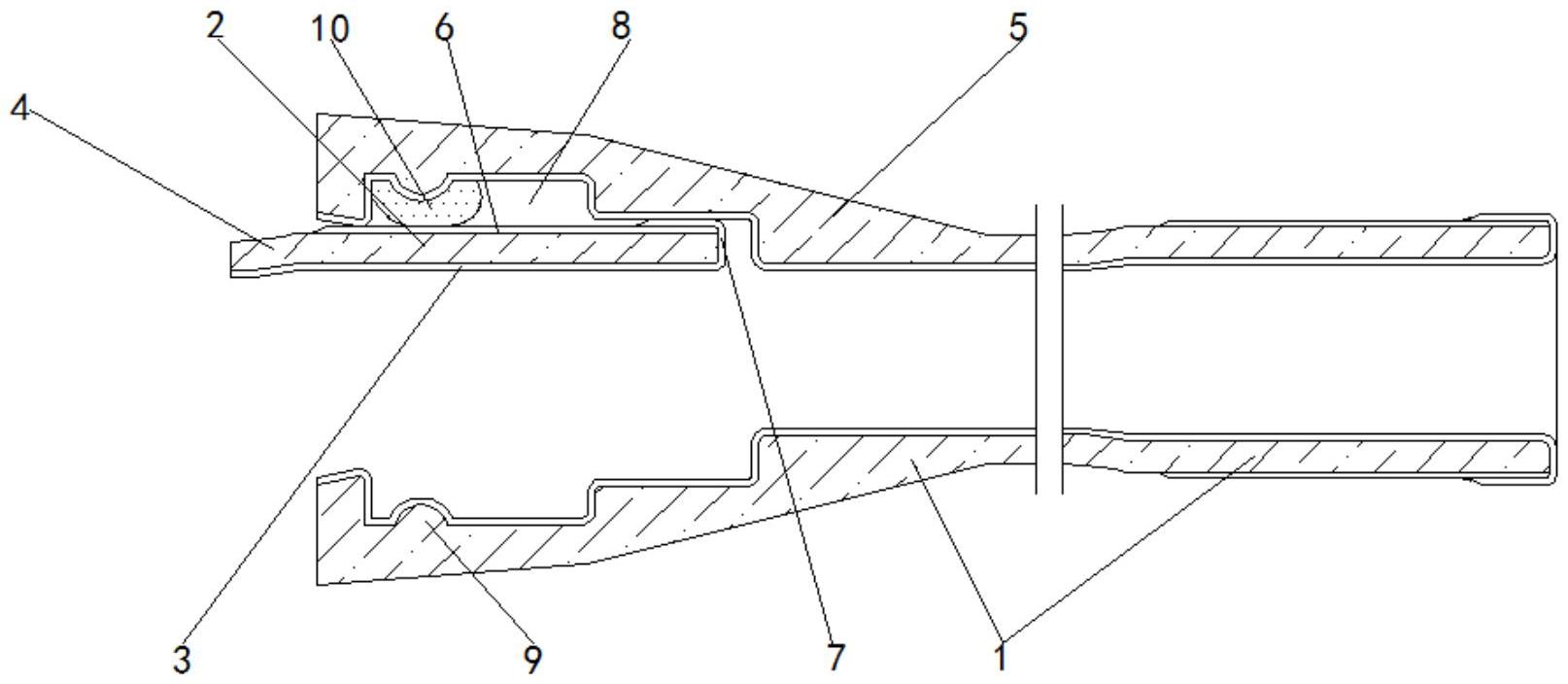 本实用新型涉及一种内衬不锈钢复合管承插柔性连接结构,包括复合管本体,所述复合管本体包括碳钢外管和不锈钢内衬,所述复合管本体的两端分别设置有插口端和承插口端,所述插口端的外壁设有不锈钢保护套,所述插口端不锈钢内衬设有外延不锈钢层,所述外延不锈钢层沿插口端部朝外翻边一定长度与不锈钢保护层焊接。该内衬不锈钢复合管承插柔性连接结构,通过在承插口端和插口端之间设置密封件,使得复合管本体密封性能好,通过凸起、插口与密封件之间的配合,可起到防渗漏作用,通过外延不锈钢层沿插口端部朝外翻边一定长度并与不锈钢保护层的一端封焊,对其碳钢外管进行了防护,可避免液体对其碳钢外管造成腐蚀破坏,对其碳钢外管进行了有效的防护。
