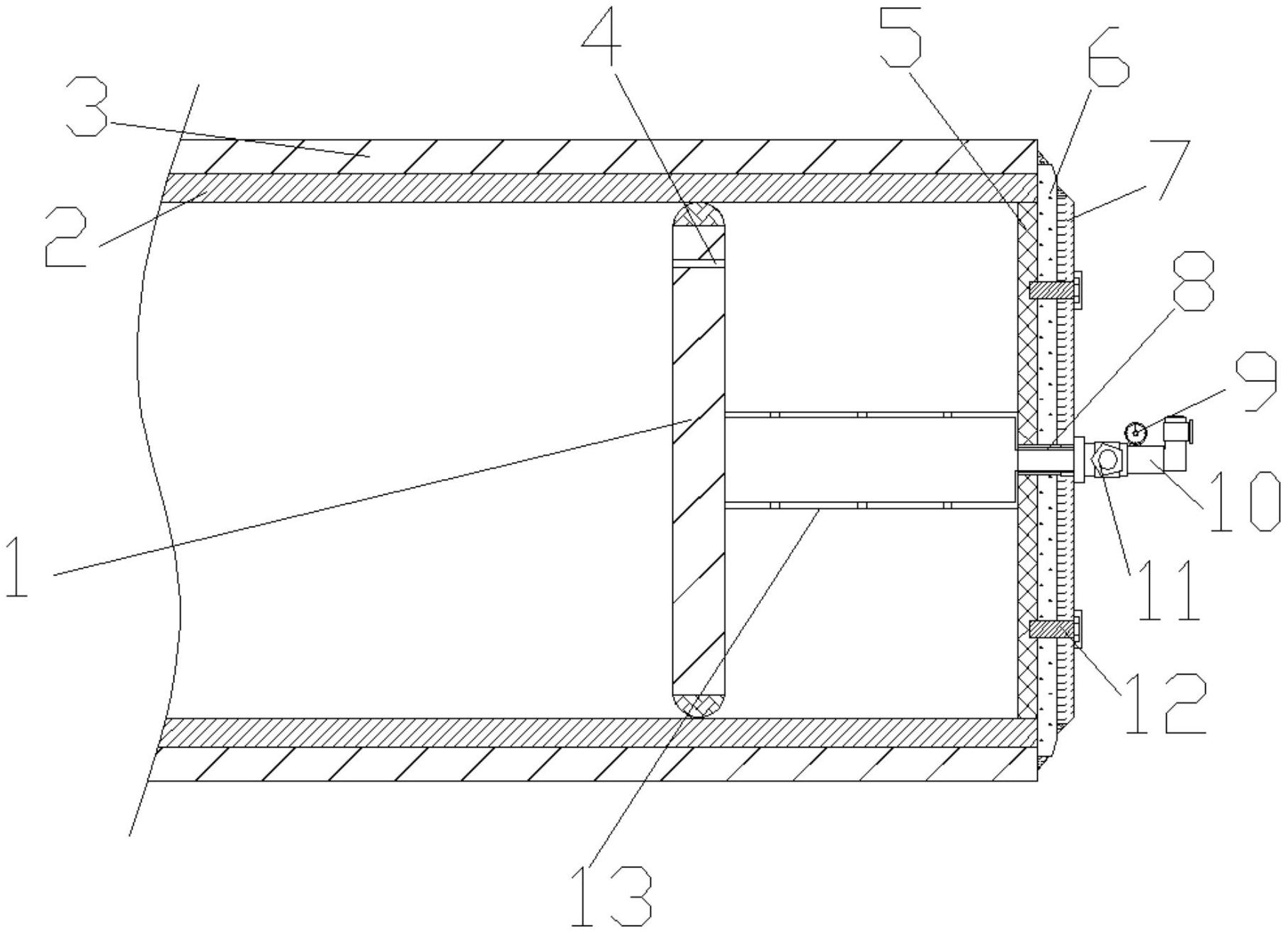 本实用新型公开了一种复合钢管管口阶梯封焊结构,包括主架结构和支架结构,所述主架结构包括外管,所述外管的内部装设有内管,所述内管的右侧装设有第二焊接板,所述第二焊接板的右侧装设有第三焊接板,所述外管的右侧与第二焊接板的左侧相连;所述支架结构包括位于第二焊接板左侧的第一焊接板,所述第一焊接板右侧开设有两个紧固槽,两个所述紧固槽的内壁均螺纹连接有连接螺栓,所述连接螺栓的右端贯穿与第二焊接板与第三焊接板的内部。该复合钢管管口阶梯封焊结构,第一焊接板、第二焊接板、第三焊接板的装设,进行依次阶梯式的封焊,且由连接螺栓将各焊接板中部紧固的连接在一起,由此保证了整体的封焊效果。
