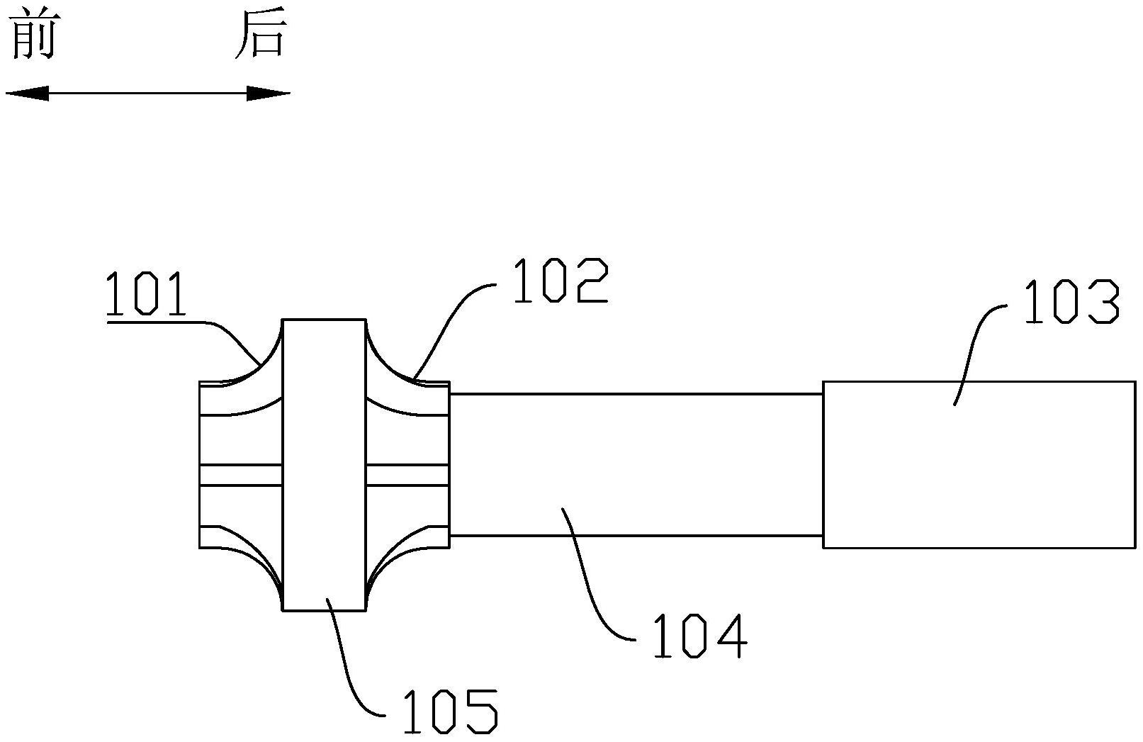 本实用新型公开了一种刀具,刀具包括刀头、刀杆、前端刀刃和后端刀刃,前端刀刃设置在刀头的前端,后端刀刃设置在刀头的后端,刀头与刀杆连接。设计具有前端刀刃和后端刀刃的刀具,安装在机床上,机床进给过程中,先加工气缸套缺口外侧壁,再加工气缸套内侧壁,提高成品精度和加工效率。本实用新型可广泛应用于机械加工技术领域。
