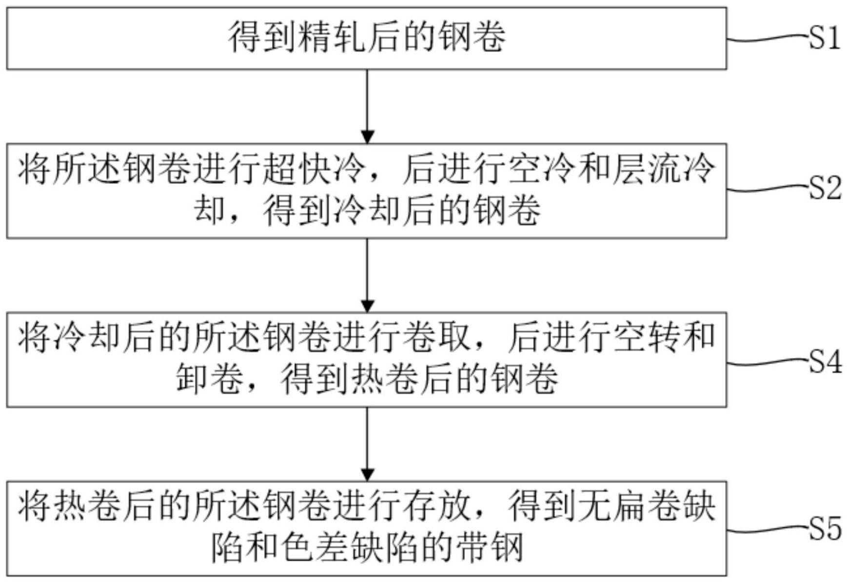 一种无扁卷缺陷和色差缺陷的带钢及其制备方法和应用