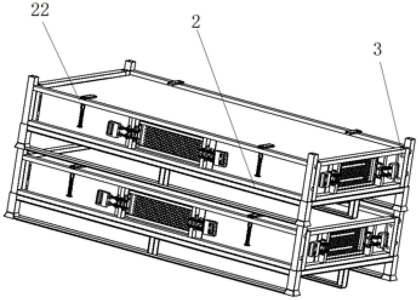 本实用新型公开了一种可拆卸式叠堆玻璃打包固定装置,包括至少一个打包框架,所述打包框架由钢材制成,所述打包框架包括用于堆叠玻璃的托盘底板,用于防止玻璃位置的长边固定板、短边固定板,长边固定板、短边固定板上设有相互配合的异形孔与限位锁头,能够实现快速拆装。长边固定板、短边固定板的主要结构为能够实现玻璃固定的玻璃固定机构,通过推动快速夹钳,即将推板向内推动,锁死,即可完成对玻璃的夹紧固定。本实用新型的可拆卸式叠堆玻璃打包固定装置,能够重复利用,具有安装方便,抗压抗变形能力强,结构简单,可回收性强的优点。