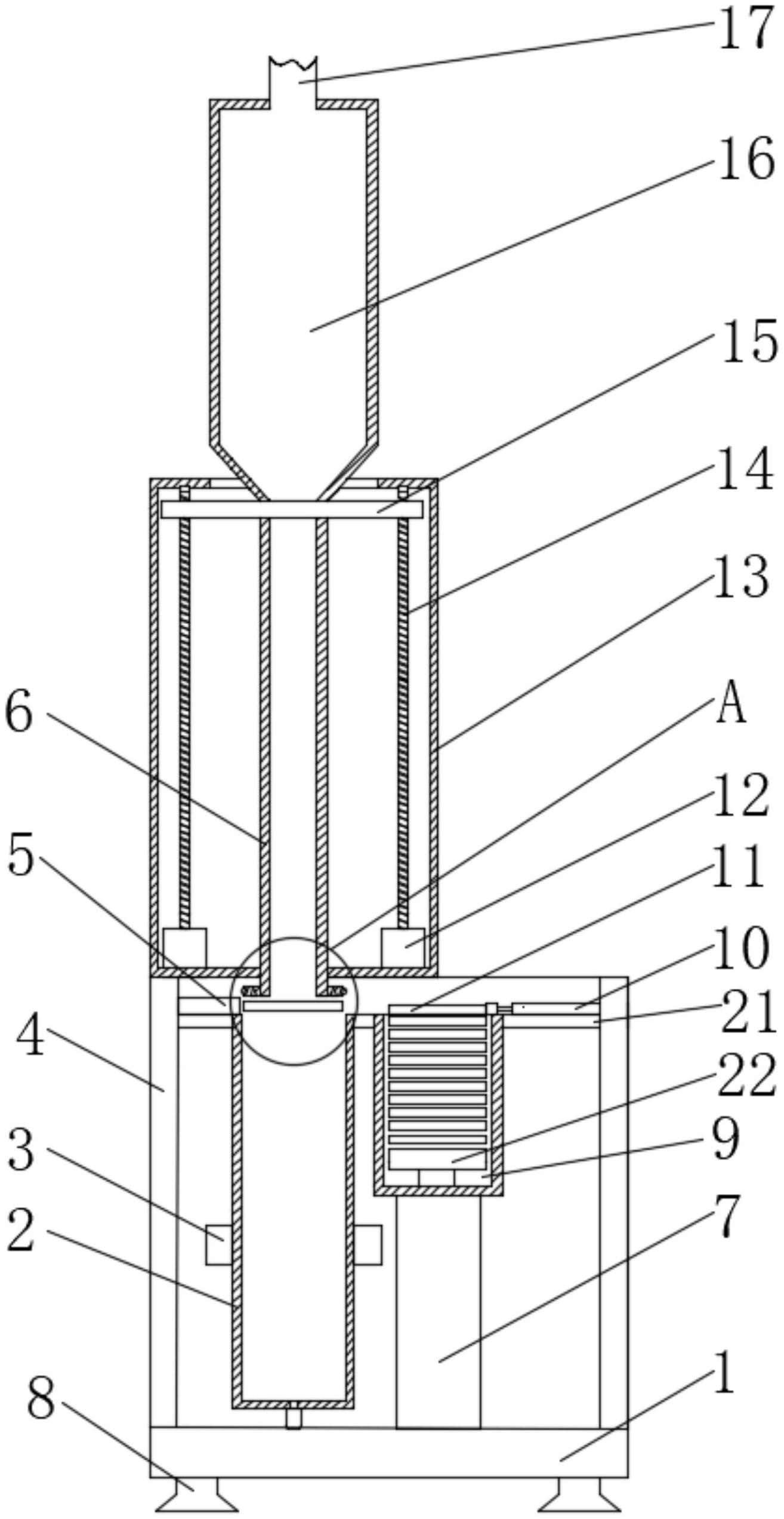 本实用新型公开了一种硅酮密封胶生产用灌装机,包括底座,所述底座的顶端固定连接在外框的底端,所述外框的顶端左侧固定连接在外壳的底端,所述底座的顶端中部靠右固定连接在第一伸缩杆的缸体底端,所述第一伸缩杆的缸体顶端设置有放置槽,所述第一伸缩杆的杆体顶端贯穿放置槽的底端并固定连接在第二平台的底端中部,所述放置槽的顶端固定连接在滑动台的中部右侧,所述滑动台的顶端右侧固定连接在第二伸缩杆的侧边。本实用新型中,通过在下料管口部设置活塞板和单向阀,使不需要其他设备便能直接将胶水灌入储胶瓶中,降低了设备的成本,另外瓶盖能被第一时间推至瓶体,减少了胶水与空气中水分的反应时间,减少了胶水的浪费,值得大力推广。