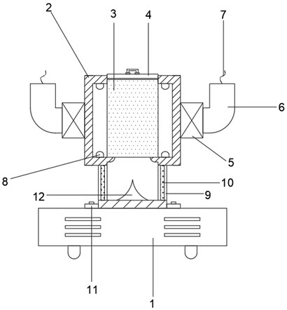 本实用新型公开了一种便携式甲醛治理装置,包括扫地机器人和处理箱,所述处理箱的两侧外壁底部通过螺钉固定有固定板,所述固定板的通过螺钉固定于扫地机器人的顶部外壁,所述处理箱的顶部外壁开设有插口,穿过插口在处理箱的内壁插接有滤芯,且插口的内壁通过螺纹连接有盖板,所述处理箱的内壁设置有消毒机构,且处理箱的两侧外壁设置有吹风机构,所述处理箱的两侧外壁开设有进气口,所述进气口的内壁通过螺钉固定有过滤网,所述处理箱的底部内壁设置有导流机构。本实用新型通过设置的导流板,导流板对进入的空气进行导流将空气集中到滤芯的下方,避免两端进入的空气相撞造成能量损失,保障处理设备能够高效的运行。