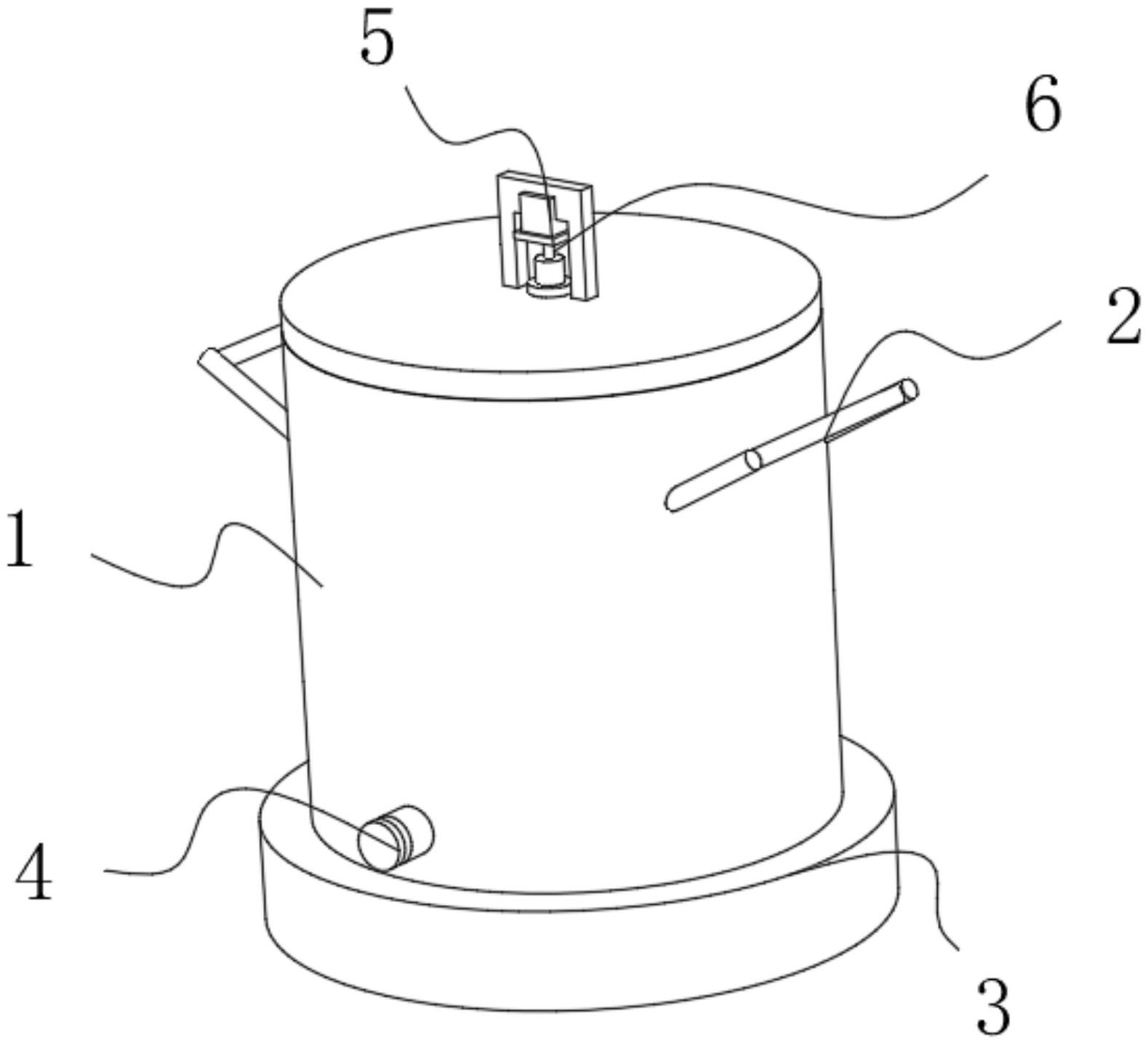 本实用新型涉及储存罐技术领域,尤其是一种多功能防水液料储存装置,包括罐体、底座和搅拌网,所述罐体一端通过嵌入的形式连接所述底座一侧,所述底座远离所述罐体的一侧设有滑轮,所述罐体远离所述底座的一端设有驱动电机,所述驱动电机通过输出轴固定连接旋转柱一端,所述旋转柱上设有搅拌网,所述搅拌网远离所述旋转柱的一端通过紧固件连接刮板,驱动电机通过输出轴带动旋转柱进行旋转,旋转柱旋转带动搅拌网进行旋转,搅拌网对罐体内部的防水液料进行搅拌工作,防止防水液料经过长时间的放置发生沉淀,导致需要使用别的器械对防水液料进行搅拌工作,降低了使用成本。