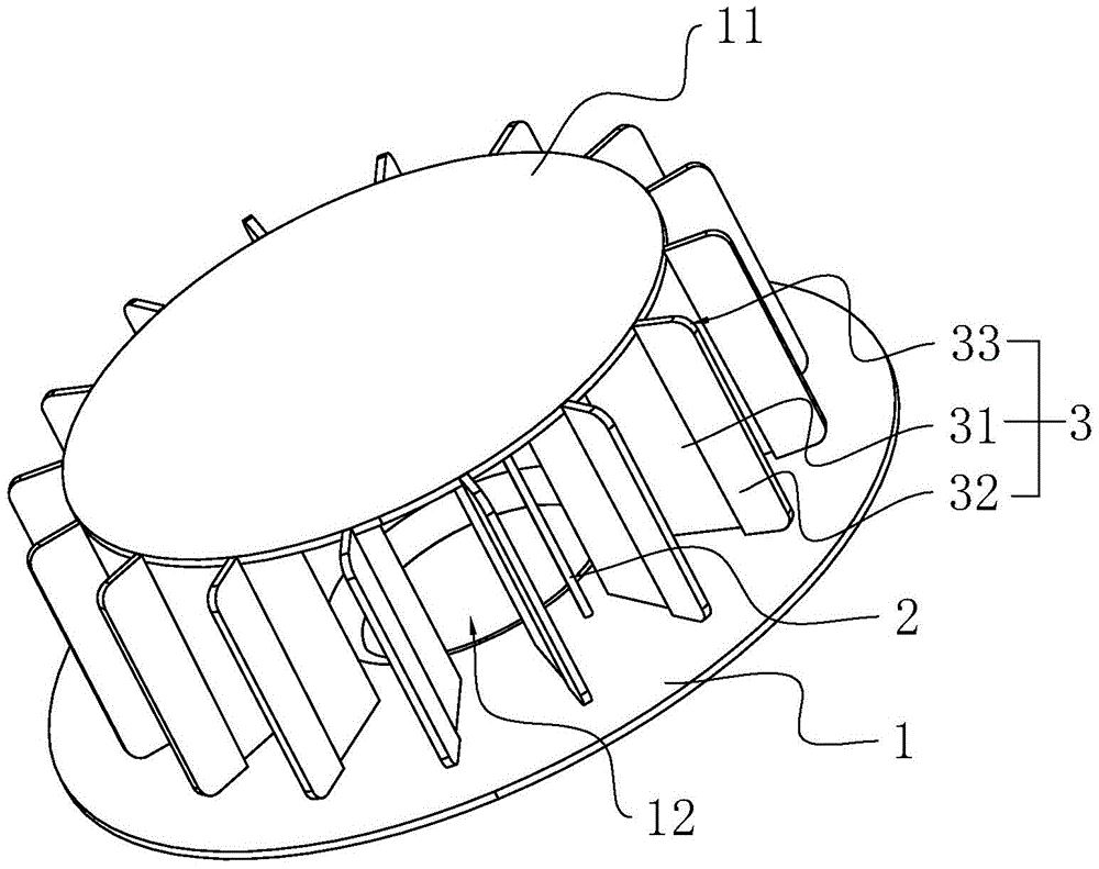 本实用新型涉及一种溢流回水口消声器,属于消声器的技术领域,包括下底板和上盖板,所述下底板和所述上盖板之间周向夹持有多个隔水叶片,其中所述下底板上开设有水流通孔,所述下底板和所述上盖板通过紧固件紧固相连并对所述隔水叶片形成夹持。本实用新型具有能够降低溢流回水过程中的跌水噪音的效果。