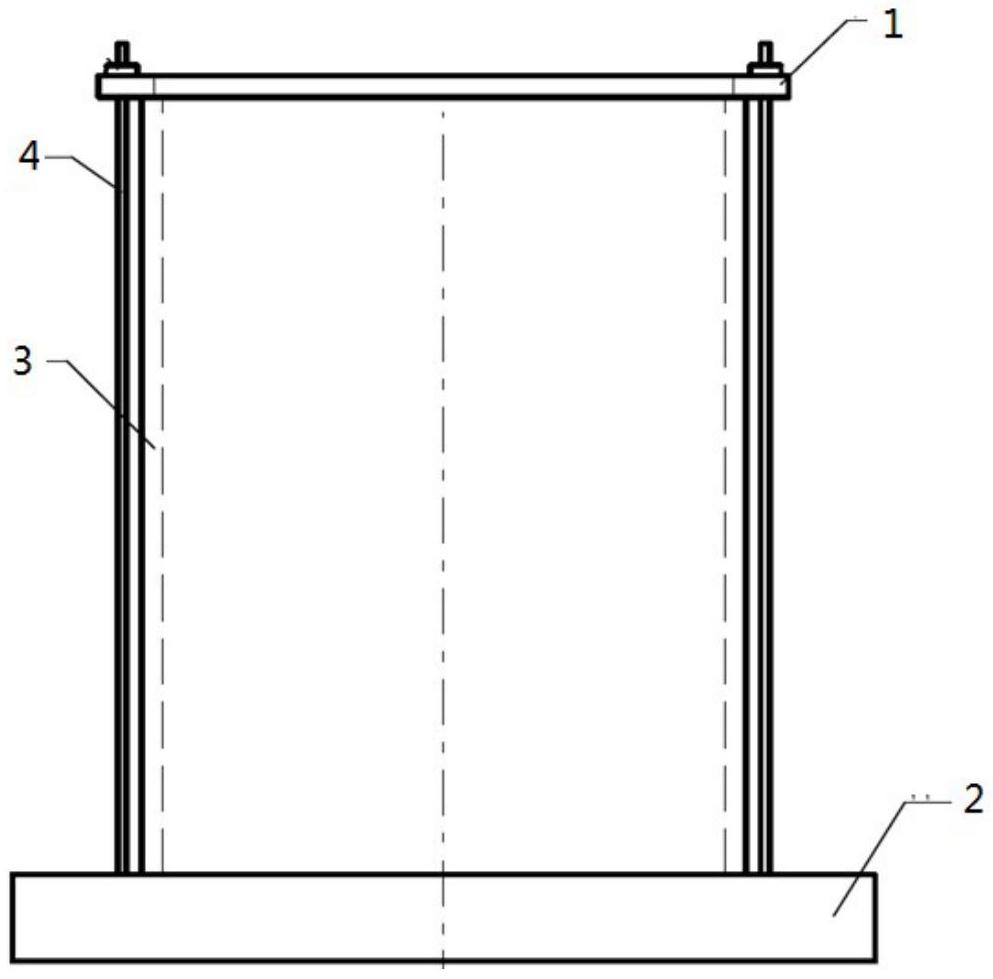 大型船舶舵杆衬套复合型加工工装,是大型船舶舵系轴承衬套在龙门铣床进行镗孔加工用的复合型装夹胎具,有与轴承衬套一端配合的下胎座(2),其特征在于:下胎座带有与轴承衬套一端口径配合的止口定位圆缺,圆缺外部带有分布的螺孔,螺孔配合连接有螺丝杆;还有上压盖(1),螺丝杆(4)穿过上压盖分布对应的孔与螺帽连接,螺帽上紧将上压盖压在轴承衬套另一端,实现扣压式装夹。衬套下端与止口定位圆缺配合,上部上压盖下压,并用8组螺丝杆紧固,保证整个工件装夹受力均匀,在镗孔加工中完全保证了衬套内孔加工的粗糙度和形位公差要求。