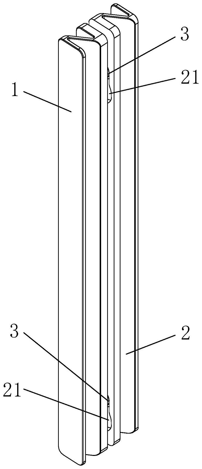 本实用新型公开了一种便携式拉手,包括有设置在门内外两侧的第一拉手件和第二拉手件,第一拉手件和第二拉手件相对设置,第一拉手件朝向第二拉手件的一面设有若干连接组件,第二拉手朝向第一拉手的一面开设有与连接组件匹配的连接口,连接口内设有供连接组件卡入固定的限位槽,本实用新型为卡入式连接,第一拉手件和第二拉手件上均无需开设安装通孔,因此也无需设置装饰盖,避免了产生装饰盖缝隙或色差,保证了外观面的平整和统一;本实用新型的安装方式为连接组件和限位槽匹配卡入,安装简单便捷;本实用新型的第一拉手件通过螺栓安装在门板一次,第二拉手件通过卡扣结构安装在门板另一侧,无需使用胶粘进行安装,避免脱落,保证安全性。