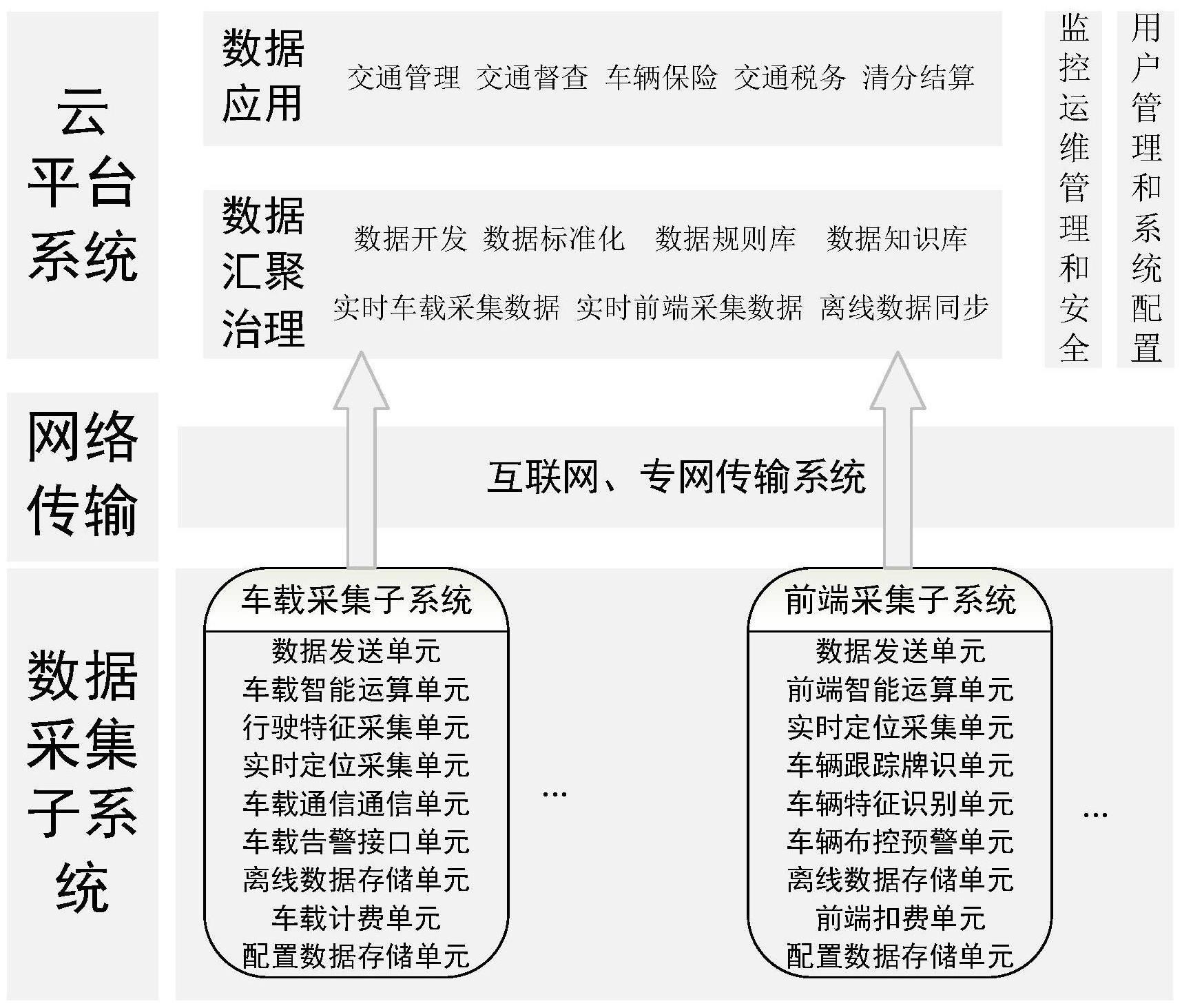 本实用新型为一种基于车牌识别技术的车辆实时定位核查系统,包括前端采集子系统、车载采集子系统以及云平台系统;其中前端采集子系统设置于车辆通行的道路上,前端采集子系统与云平台系统通信连接;车载采集子系统设置于车辆上,车载采集子系统也与云平台系统通信连接;前端采集子系统用于采集通行车辆的信息;车载采集子系统用于采集车辆的行驶数据;云平台系统用于汇总前端采集子系统以及车载采集子系统采集的数据;通过设置云平台系统、前端采集子系统以及车载采集子系统,由云平台系统对前端采集子系统以及车载采集子系统的数据进行整合分析,其中一些数据能够相互进行印证,实现校验车载采集子系统是否运行正常的目的。