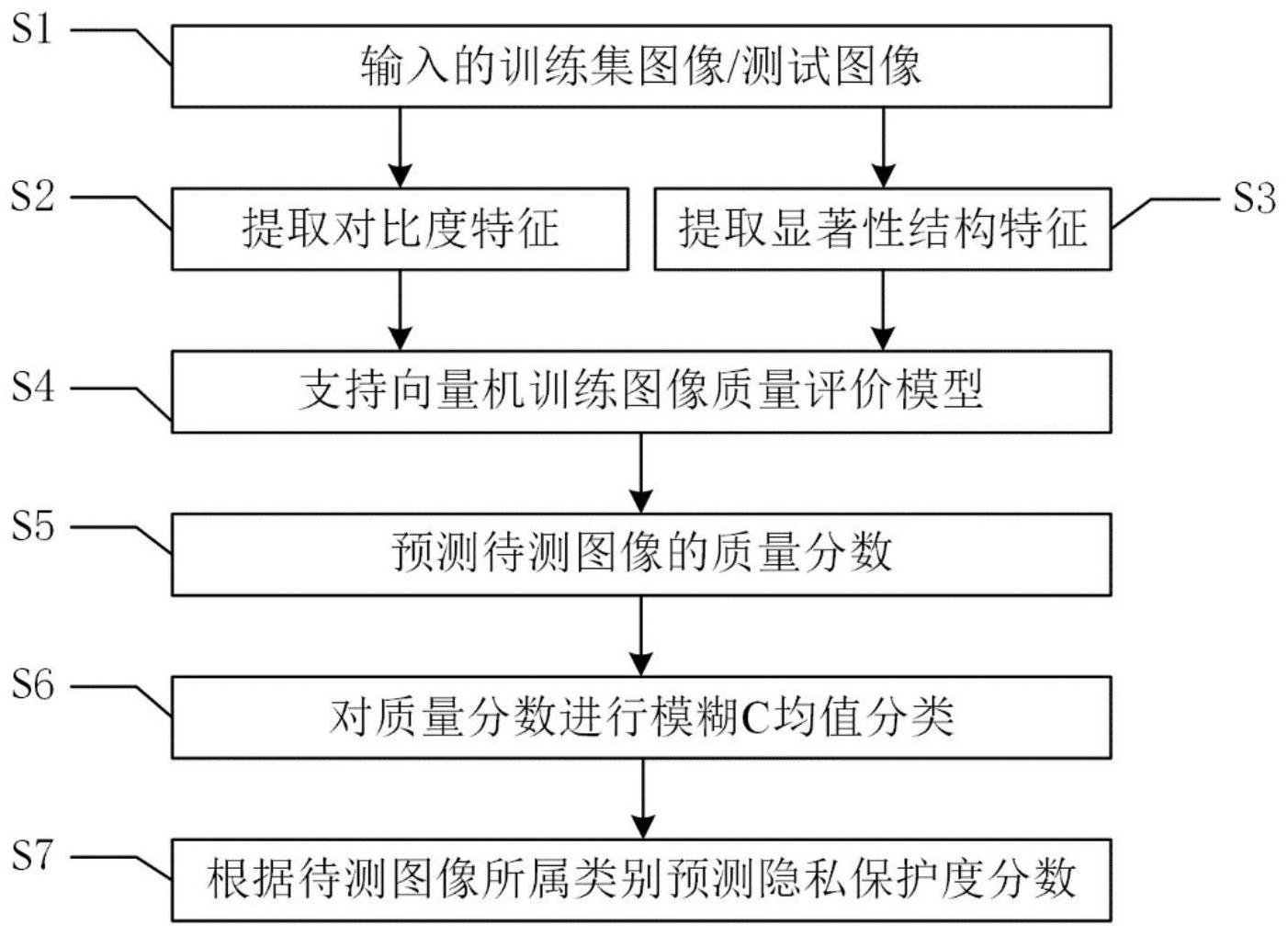本发明公开了一种针对多层压缩感知图像的隐私保护度评价方法,针对多层压缩感知图像,本发明包括分别采用CAAME算法、GCS‑LBP算子和GBVS视觉显著性算法提取图像的对比度特征、显著性结构特征;将训练图像的特征与对应的主观图像质量分数送入支持向量机训练,建立图像质量模型;最后利用模糊C均值算法对预测的质量分数聚类,由类别统计平均得到待测各图像的隐私保护度分数,本发明提出的方法提取符合人眼视觉特性的对比度特征和显著性结构特征,使得图像隐私保护度评价结果更加接近人眼的主观观测,具有很好的准确度和鲁棒性,能够满足多层压缩感知图像处理和模式识别实际应用中对于隐私保护度评价的要求。