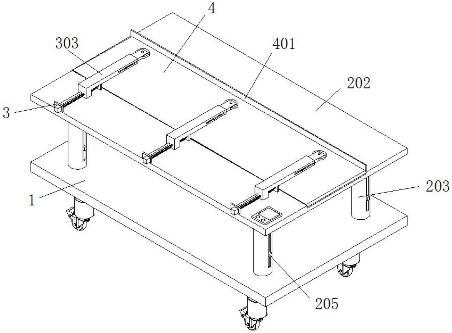 本实用新型公开了一种铝型材加工用送料装置,涉及铝型材加工技术领域。包括支撑台,支撑台上中部设置有升降结构,升降结构包括设置在支撑台上方的升降台,升降台中部设置有传送带,传送带一侧设置有挡板。本实用新型通过稳定结构的设置,当铝型材在传送带上进行运输送料时,铝型材一侧贴着挡板,另一侧第一电机启动,第一电机带动螺杆转动,L型台在螺杆转动作用和固定杆的限位作用下沿着螺杆方向向铝型材方向移动,使得插设杆和滚轮靠近铝型材一侧,滚轮对铝型材起到挤压固定的作用,同时滚轮不易对铝型材的移动进行阻挡,使得铝型材送料稳定,铝型材不易在运输过程中偏离原有的运输轨道,保证了铝型材的送料效率。