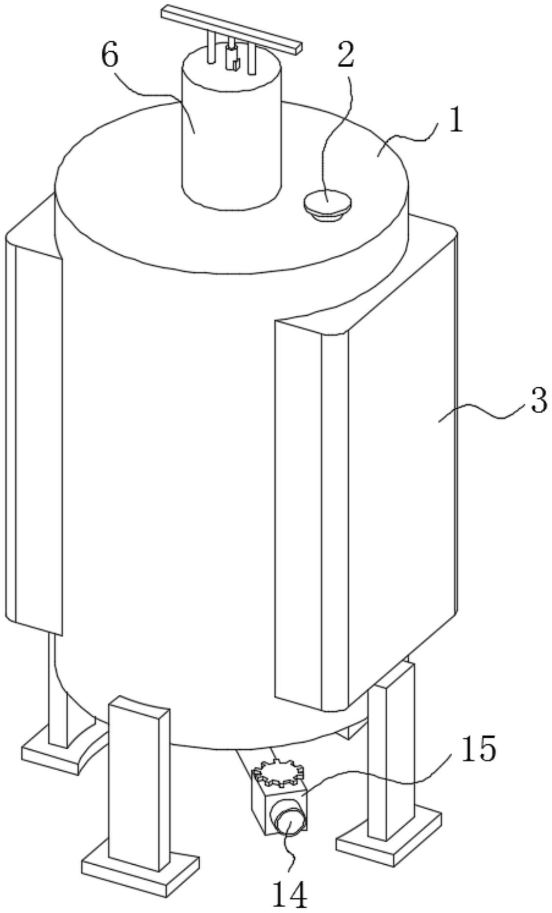 本实用新型公开了一种提纯装置,涉及药酒提纯技术领域,包括储酒罐体,所述储酒罐体的上表面固定连通有添加酒管,所述储酒罐体的上表面滑动连接有搅拌轴,所述搅拌轴的外表面固定连接有搅拌杆,所述储酒罐体的上方设置有驱动搅拌轴升降旋转的升降旋转机构,所述储酒罐体的内部固定连接有过滤提纯网和分隔引流板。它通过搅拌轴、搅拌杆、升降旋转机构和过滤提纯网之间的配合设置,通过升降旋转机构使搅拌轴带动搅拌杆在储酒罐体的内部升降移动,能够对过滤提纯网上药酒进行搅拌,有效的增加了药酒的流动性,并提升了过滤提纯网对药酒的过滤效率,还可有效避免药酒中沉淀物堆积在过滤提纯网上,保证过滤提纯网的过滤效果。