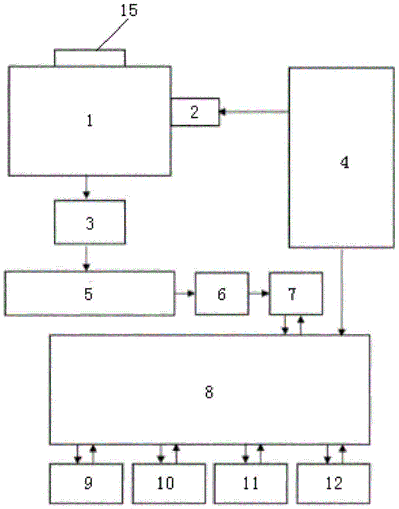 本实用新型涉及人参鉴别技术领域,尤其涉及一种林下山参粉末无损鉴别的近红外检测仪,其结构为:漫反射光收集系统上设置有检测口,光源安装在漫反射光收集系统中,且能够为检测口提供检测光线;漫反射光收集系统、分光器,光电传感器,A/D转换器、数字放大器,控制模块依次连接;电源和光源、控制模块均连接;温度控制传感器、光谱数据寄存传输器、计算模块、结果输出模块均与控制模块连接;载样装置为透明的具有腔室的结构,且具有开口,以便于盛装山参粉末后放置在检测口实现山参粉末的光学检测。通过本实用新型的这种便携式的近红外光谱装置,能够方便地对林下山参进行采样,以完成数据采集工作,便于后期进行林下山参的鉴定。