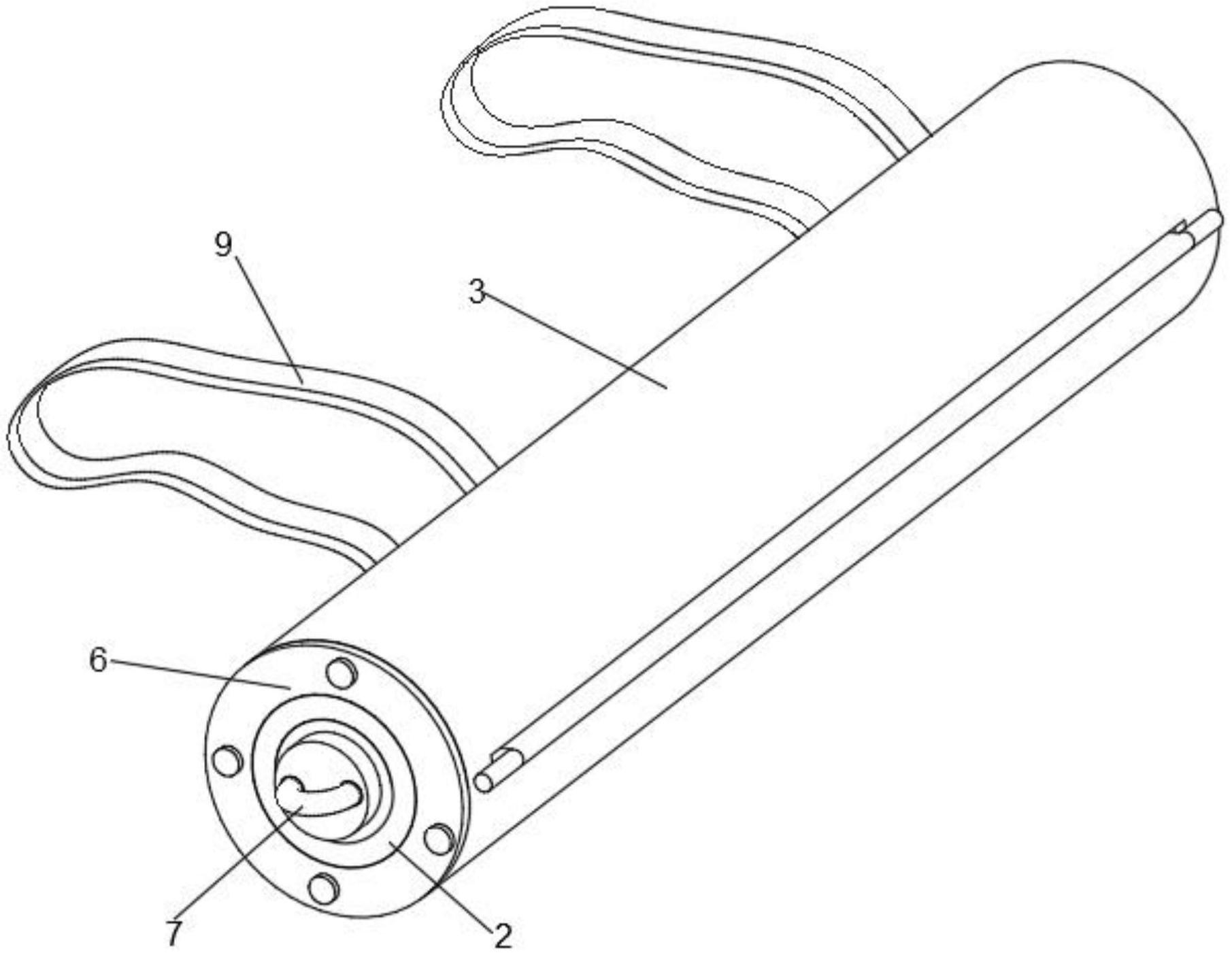 本实用新型公开了书画毡领域的一种新型书画毡,包括本体,本体呈卷状,本体内侧设置有转轴,转轴外侧设置有卷筒,卷筒右端设置有收纳口,转轴内侧设置有握把,卷筒前后两端均设置有密封盖,握把前端设置有抽拉环,通过抽拉环将握把从卷筒内拉出,然后手持握把,通过拦挡杆将本体拉出使用,方便快捷,且本体使用完毕后,转动握把,通过转轴将本体从收纳口收入卷筒内,后续将握把插入卷筒内,减少其占用空间,提高了其实用性,通过拦挡杆可以拦挡本体,避免本体完全收纳后影响后期使用,且便于抽拉本体,通过密封盖封堵卷筒前后两端,避免卷筒内部进入灰尘及杂物,且通过拆卸固定螺栓使卷筒打开,便于清理维护卷筒内部,提高了卷筒的干净整洁。