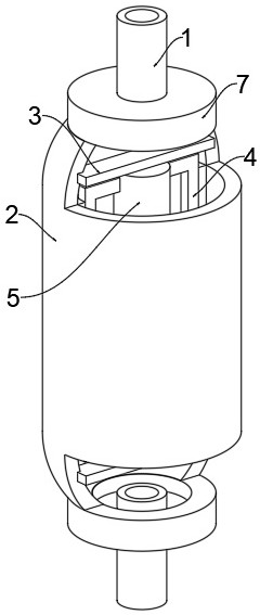 本实用新型公开了一种禽流感疫苗生产用双级中空纤维装置疫苗浓缩设备,包括装置外壳体,所述装置外壳体的上下端均安装有密封盖顶,所述密封盖顶的中间设置有连接管道,所述装置外壳体的内部均匀安装有两个支撑横梁,两个所述支撑横梁的中间安装有中心立柱,所述中心立柱的外侧安装有旋转立柱,所述旋转立柱的外侧均匀安装有两个U形固定杆,所述U形固定杆的外侧安装有清洁刮板,所述旋转立柱两端均安装有密封盖板,所述中心立柱与旋转立柱的中间设置有电机安装板。本实用新型通过安装有旋转立柱、清洁刮板和电机可以对浓缩后的设备内部进行清洁,保证下次浓缩时不会因为上次的浓缩残留导致疫苗污染,可以保证产品质量,结构简单、操作方便。