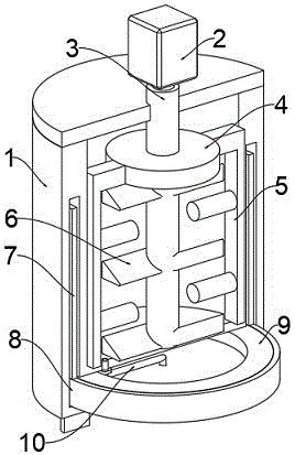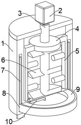 本实用新型公开了一种禽流感疫苗生产用疫苗抗原灭活装置,包括装置主壳体,所述装置主壳体的上方安装有搅拌电机,所述搅拌电机的前端安装有搅拌主轴,所述搅拌主轴的外表面均匀安装有若干个主搅拌桨,所述主搅拌桨的上方安装有转动盘,所述转动盘的两侧均安装有次级搅拌杆,所述转动盘的内部安装有反向齿轮环,所述反向齿轮环的中间安装有动力齿轮,所述动力齿轮与反向齿轮环的中间安装有传动齿轮,所述装置主壳体的内部安装有固定底盘,所述固定底盘的外侧安装有旋转底盘。本实用新型通过安装有恒温加热板、旋转底盘和蓄电电池可以使得疫苗在加工的过程中受热均匀,确保疫苗成品的品质,保证产品质量,结构简单,操作方便。