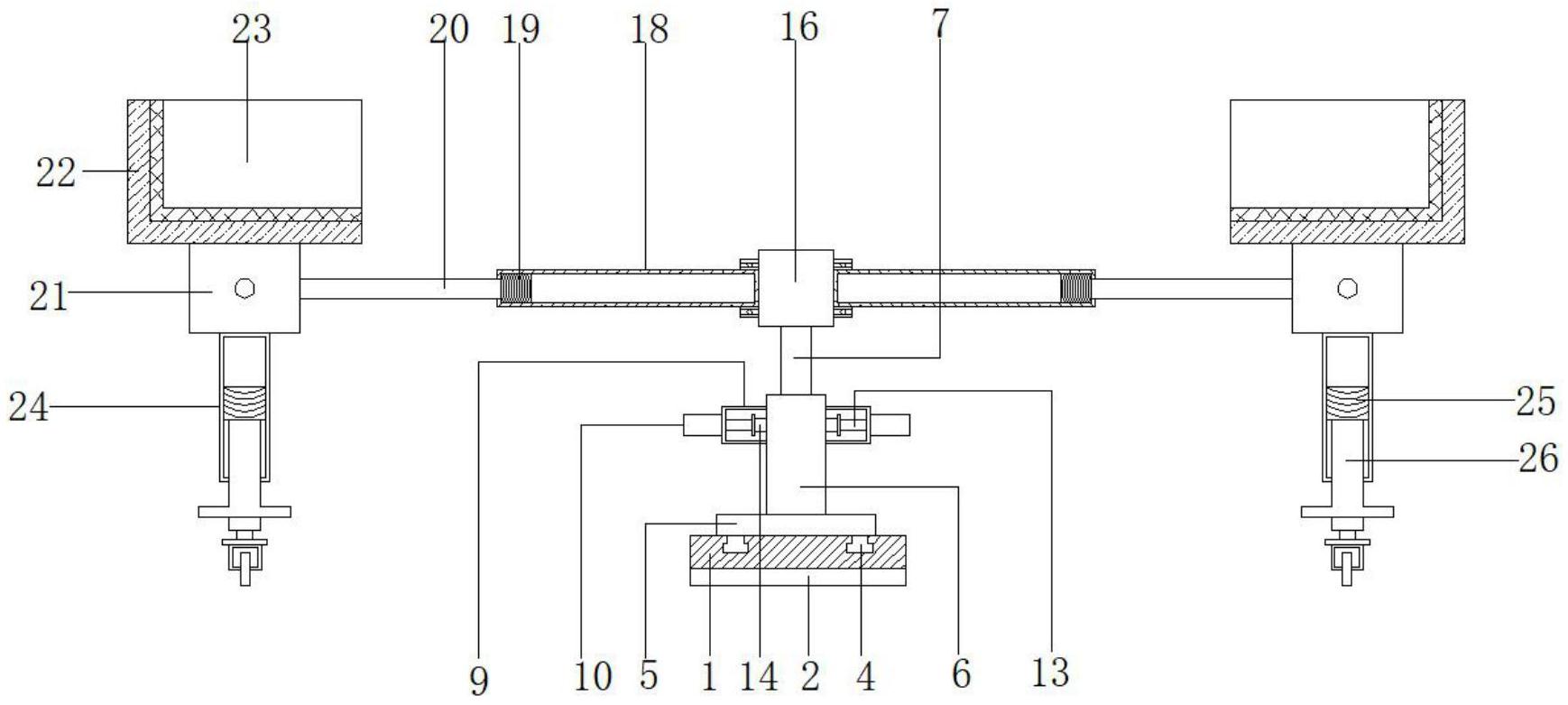 本实用新型涉及防静电地板技术领域,尤其涉及一种便于调节的防静电地板支架,包括底板、两个第一固定块和两个第二固定块,所述底板的顶部外壁开设有两个对称分布的T形滑槽,且两个T形滑槽的内壁均滑动连接有两个T形滑块。本实用新型转动两个第一固定块上的伸缩部件可调节四个卡板之间的宽度,转动两个第二固定块上的伸缩部件可调节四个卡板之间的长度,然后通过两个高度调节部件可调节四个卡板的高度,进而满足了适配不同规格的防静电地板和调节高度的效果,卡板内设置有防滑垫,可增加四个卡板对防静电地板的固定性,两个高度调节部件可在底板上移动,不会对调节工作造成影响,安置块上的万向轮可进行调节高度,增强整体稳定性。