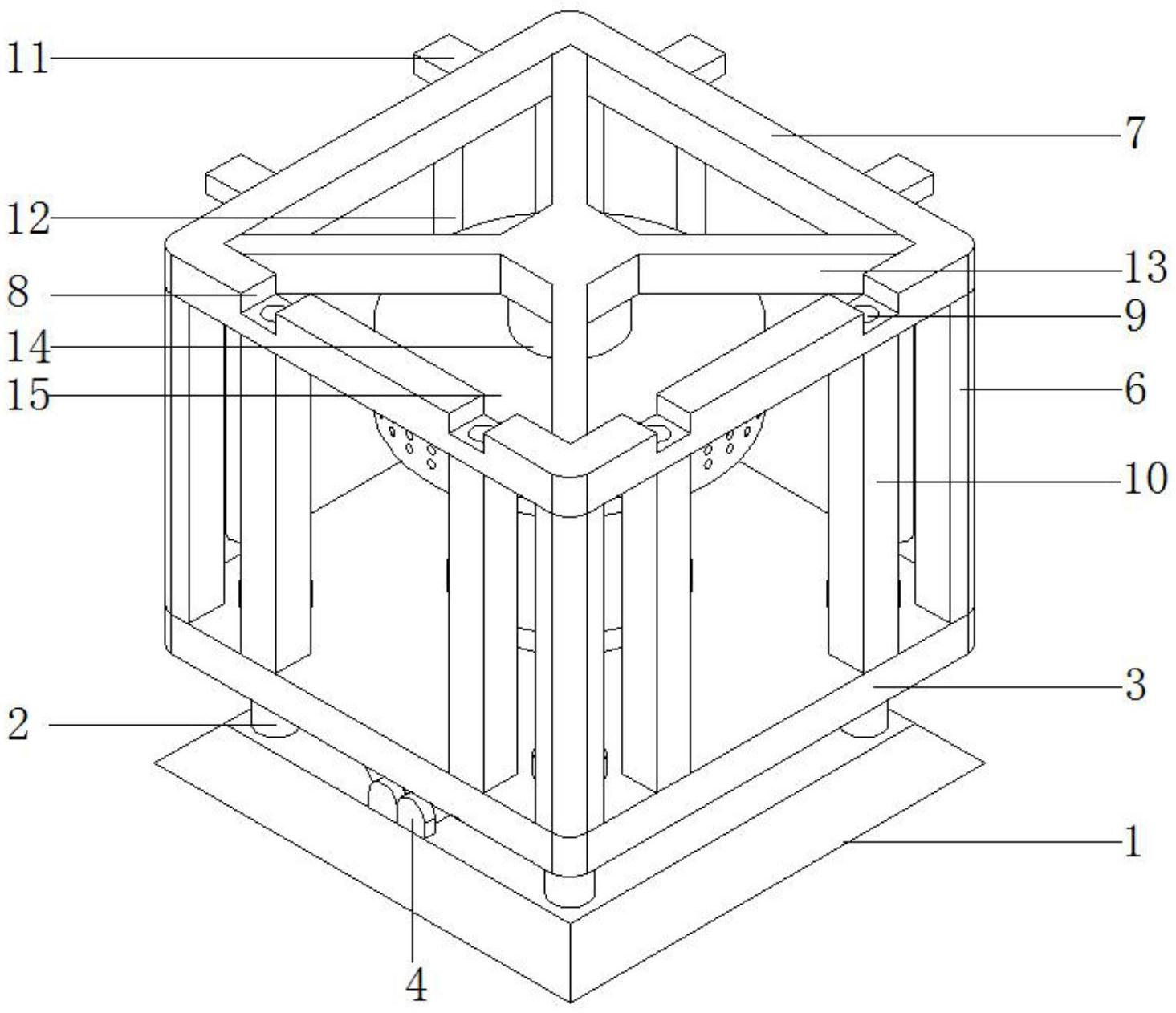 本实用新型公开了一种防静电架空地板连接支架,属于架空地板领域,针对背景技术提出的仅对架空地板的四角进行固定,导致架空地板的中部位置处于悬空状态,容易造成架空地板中部凹陷甚至损毁,实用性低的问题,现提出以下方案,包括棱台状的支撑座,所述支撑座顶部的四角外壁上均设有限位机构,所述限位机构包括焊接于支撑座顶部外壁上的固定杆和焊接于固定杆顶端外壁上的限位板,所述支撑座上方设有底板,所述支撑座顶部的两边外壁上均设有两个支撑机构。本实用新型能够对安装高度进行调节,能够对底板进行支撑,防止支架倾斜,提高了稳定性,能够避免架空地板中部发生凹陷或损毁,提高了实用性,能够进行快速的拼接,提高了工作效率。