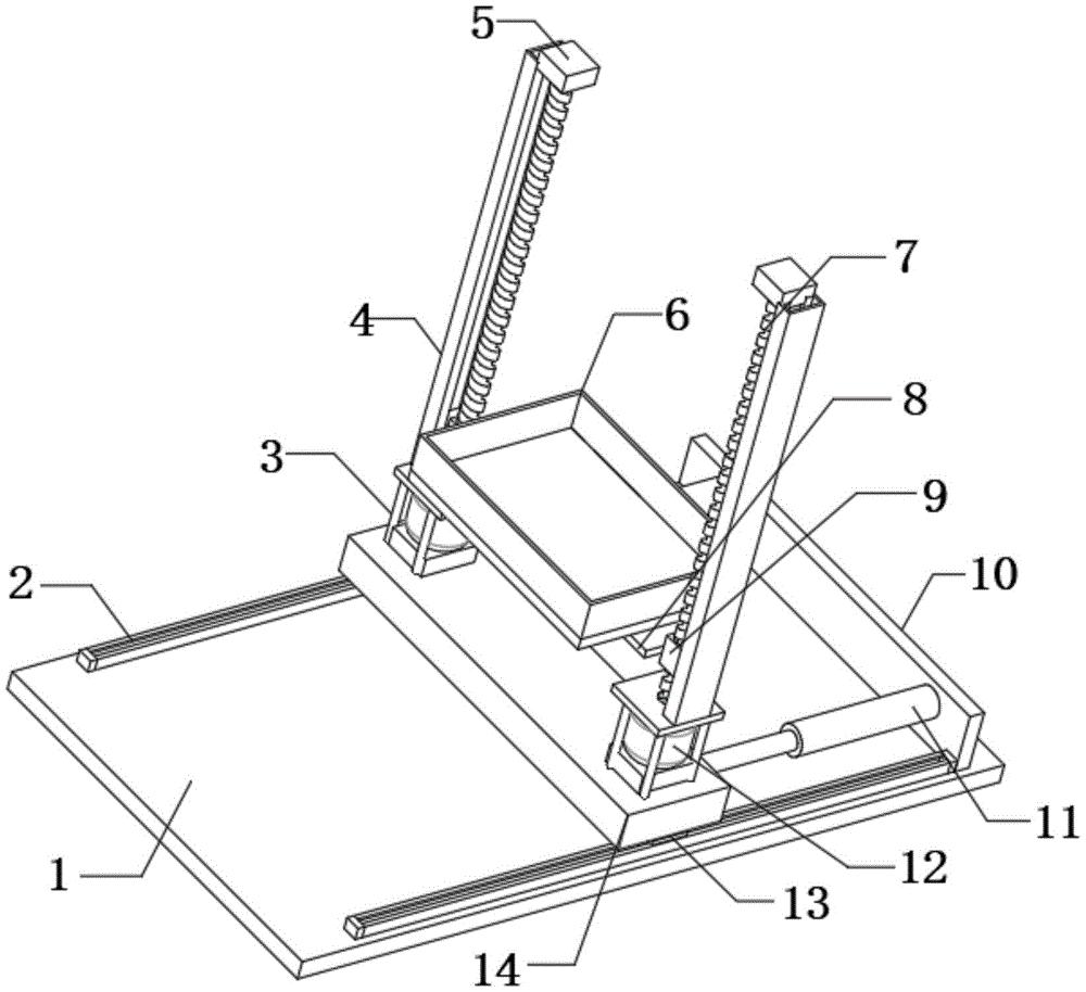 本实用新型公开了一种电机位置调节装置,包括底板,所述底板的顶部外壁设有水平调节组件,且水平调节组件上设有高度调节组件,所述高度调节组件包括固定板,且固定板的顶部外壁两端均设有固定架,两个所述固定架的底部内壁均设有驱动电机,且两个驱动电机的输出轴均通过联轴器固定有丝杠,两个所述固定架的顶部外壁均设有限位槽,且两个限位槽靠近顶端的一侧外壁均设有轴承座。本实用新型通过设置有高度调节组件,进行电机的固定时,根据被驱动物的高度进行电机的高度调节,从而使得调节后的电机与被驱动物处于同一水平上,从而保证电机运行过程中不会出现安全事故,提高该装置的实用价值和安全性能。