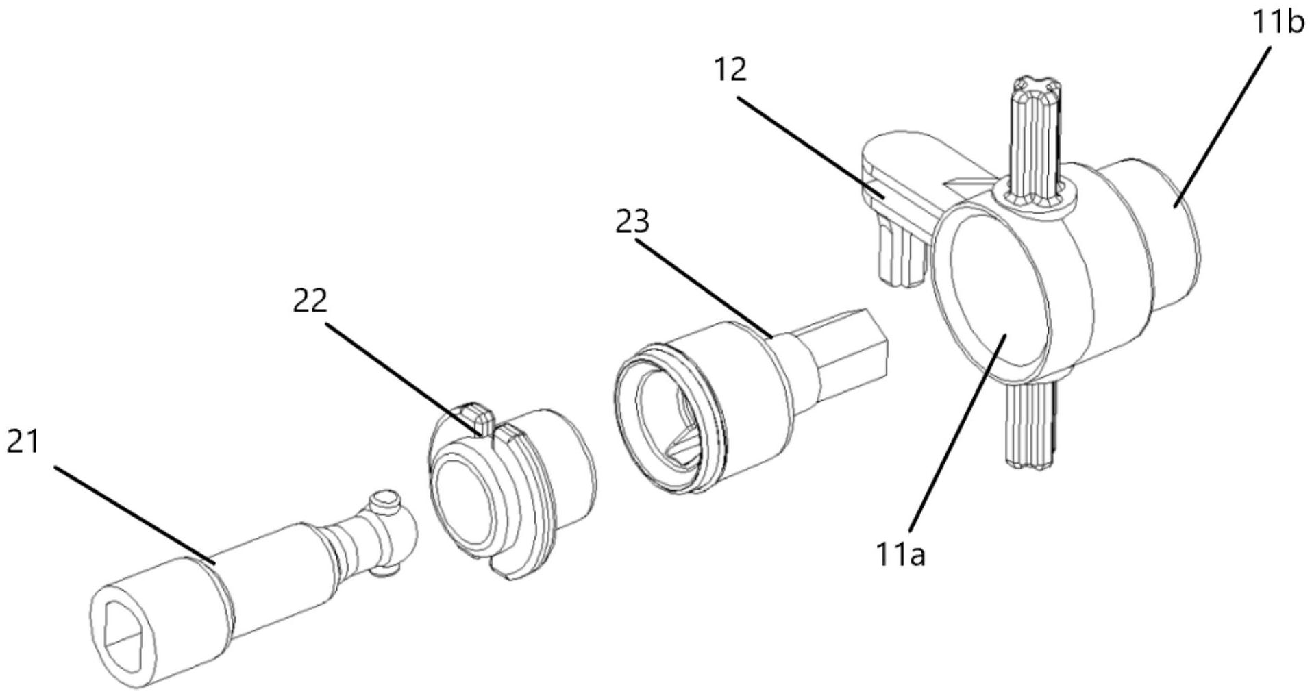 本实用新型公开了一种遥控车模的带前后传动的万向结装置,其包括万向结壳体、传动组件;万向结壳体包括传动壳体,所述传动壳体的一端开设传动嵌入口,所述传动壳体的另一端为轮胎连接端,还包括与所述传动壳体固定连接的转向连接件;传动组件包括传动轴、球形套以及六角套,所述传动轴的一端设有球形传动件,所述球形套套装在所述球形传动件的外表面上,所述球形套的末端嵌入所述六角套中,所述六角套嵌入所述传动嵌入口。本实用新型的万向结装置能够在转动的同时进行前后驱动的传动,使得遥控车模更接近真车。
