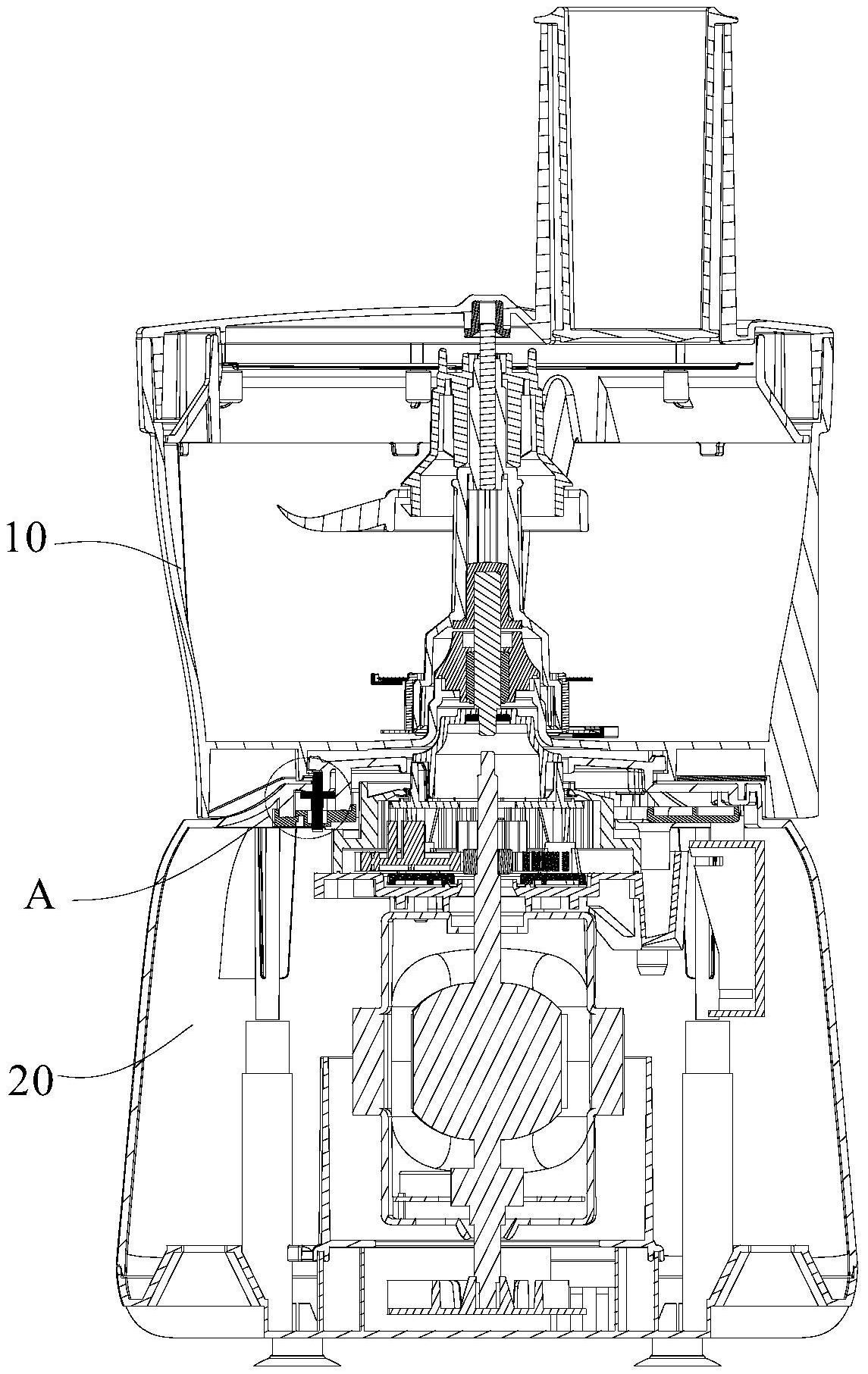 本实用新型公开了快捷装配的食品加工机,包括机座,机座的顶端设有安装槽;杯体,杯体的底端设有卡槽;锁定组件,包括锁定杆以及弹性部件,锁定杆以及弹性部件均安装于安装槽内,锁定杆的一端形成为安装端,锁定杆的另一端形成为锁定端;安装端安装于安装槽内,弹性部件用于提供一驱使安装端远离安装槽运动,以使锁定端卡接在卡槽内的弹性应力。本实用新型的快捷装配的食品加工机,其可在杯体与机座装配到位后,锁定杆在弹性部件的作用下弹起插装至卡槽内,便于直观判断。