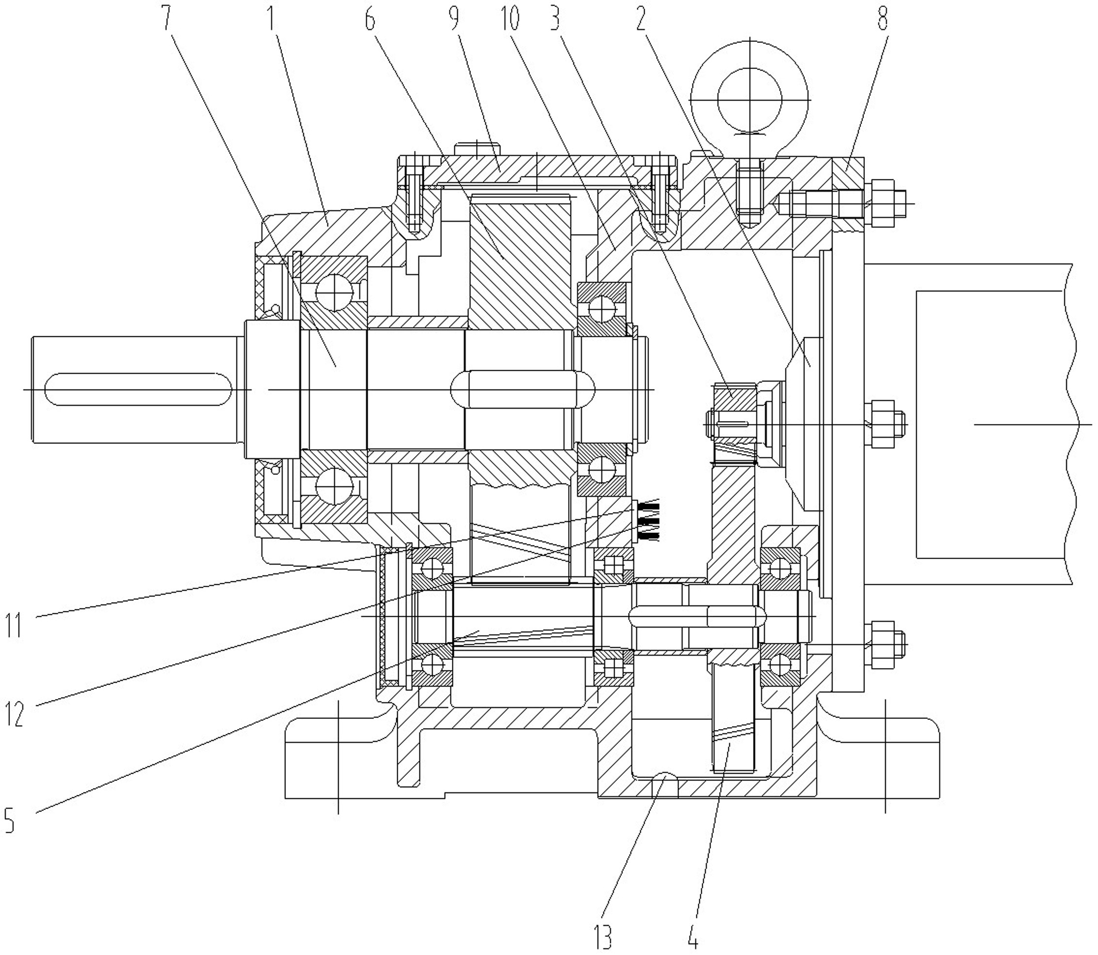 本实用新型涉及一种减速机,尤其是涉及一种木工机械专用减速机。其主要是解决现有技术所存在的减速机的体积较大,因此所占空间较大,而且除尘效果较差,传动精度较低,造成效率较低,使用寿命较短等的技术问题。本实用新型包括壳体(1),所述的壳体(1)中部设有电机(2),电机的电机轴通过第一斜齿轮(3)连接有第二斜齿轮(4),第二斜齿轮通过斜齿轴(5)连接有第三斜齿轮(6),第三斜齿轮连接有输出轴(7),输出轴伸出壳体外,减速机的总长度L为400‑420mm,高度H为290‑310mm。