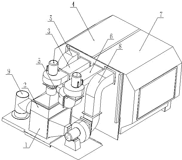 本实用新型涉及一种既能够有效地提高热利用率,又能够有效地降低能耗消耗的覆膜机专用高效节能烘箱,A风箱和B风箱并列排列,A风机和风机分别位于A风箱和B风箱一侧上部,热交换器位于A风箱和B风箱下方,加热器位于热交换器上且与热交换器相通,加热器出口与A风机的进风口连通,A风机和B风机的出风口通过A风管和B风管分别与A风箱和B风箱连通,回风管一端与A风箱连通、另一端与B风机进风口连通,C风机位于热交换器的一侧且C风机的出风口与热交换器的进口连通,C风机的进风口通过C风管与B风箱连通,热交换器排气孔与废气排放管连通。