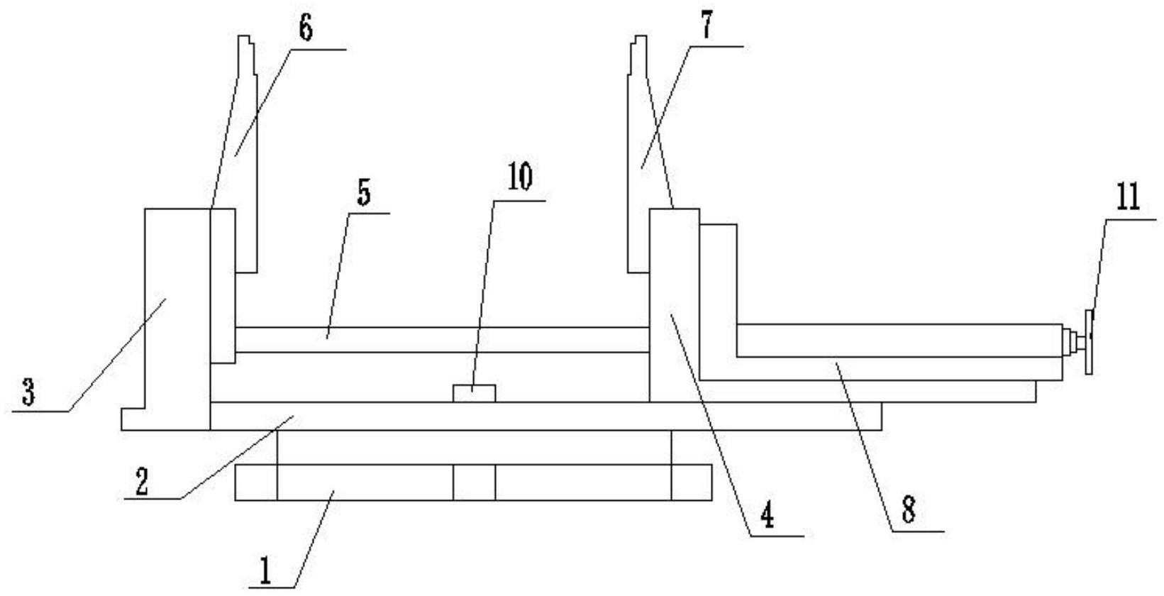 本实用新型提供了三坐标通用夹具,涉及工装夹具技术领域。该三坐标通用夹具,包括夹具底座、支撑台,支撑台设于夹具底座的上方,支撑台的两侧相对设有第一平口钳部和第二平口钳部,支撑台的上方设有滑轨,滑轨的一端穿入第一平口钳部,另一端贯穿第二平口钳部,第二平口钳部沿滑轨滑动后靠近或远离第二平口钳部;第一钳口部与第二钳口部均包括安装部、支撑部、夹持部,第一钳口部与第二钳口部上的夹持部之间夹持有零件。本实用新型的第一钳口部与第二钳口部上的夹持部之间夹持零件,使得不同尺寸的零件稳定地固定在夹具上,调节稳定便捷,保持X、Y、Z三维方向上的一致,不影响零件的形位公差,确保零件能够被精准地夹持并供测量。