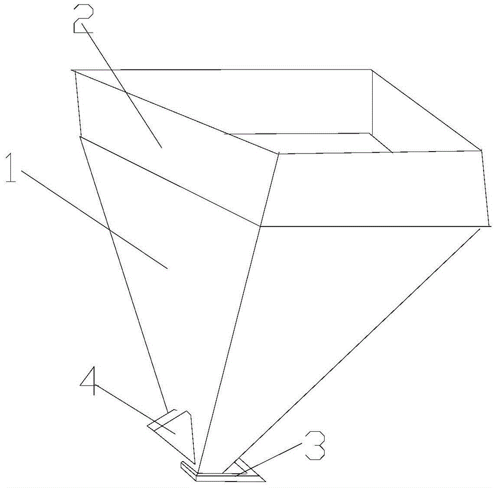 本实用新型公开了一种茶叶进料斗结构,包括进料斗本体,料斗本体顶部的进料口和底部的出料口;所述进料斗本体为上大下小的倒锥形结构,在进料斗本体靠近出料口的位置处设置有一个可视窗,可视窗包括底部焊接在进料斗本体上并与进料斗本体呈一定倾斜角度布置的面板和设置在面板与进料斗本体之间的两侧板合围而成,所述进料斗本体在可视窗合围成的位置处设置有开口。本实用新型的可视窗结构即可以确认进料斗内茶叶的剩余量,同时,还可以通过可视窗对进料斗内部进行清理,保持进料斗内清洁,不同时期加工的茶叶间不会相互污染。可广泛应用于茶叶进料斗领域。