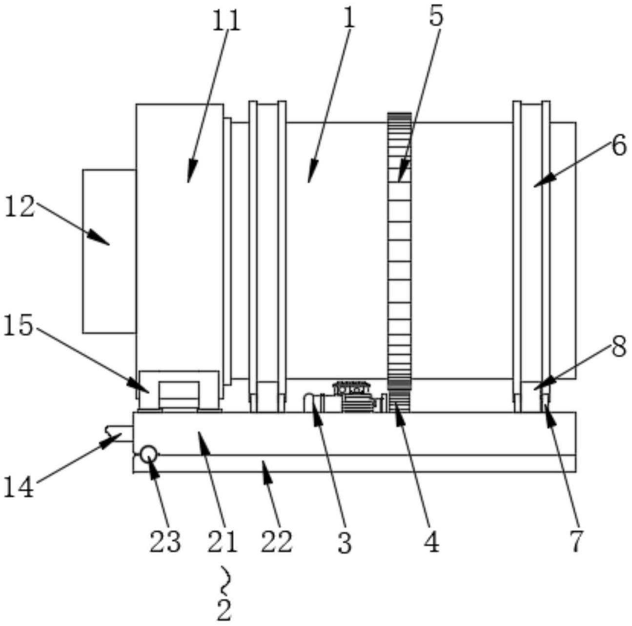 本实用新型公开一种红茶加工用烘干设备,包括烘干筒和支撑架,所述支撑架的内部通过安装板设置有驱动电机,所述驱动电机的输出端固定连接有驱动齿轮,所述烘干筒的外表面固定连接有驱动齿圈,通过在烘干筒的内部设置加热筒,并配合驱动电池上的驱动齿轮和驱动齿圈的啮合关系,能够使得烘干筒进行转动,从而使得红茶能够在加热筒的内表面进行滚动,通过此种方式能够使得红茶在加热筒内均匀受热,从而提高其烘干的效果,并且设置弧形板能够防止红茶在烘干时进入限位箱的内部,而当烘干筒反向转动时,并且斜块推出斜槽内时,烘干筒处于倾斜状态,弧形板能够使得红茶快速落出。