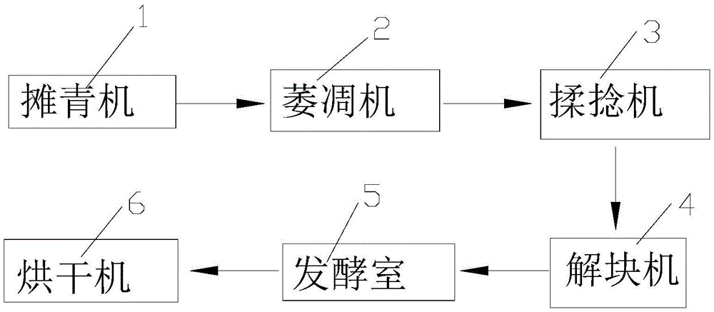 本实用新型公开了一种基于红茶滋味分析的红茶加工系统,包括依次设置的摊青机、萎凋槽、揉捻机、解块机、发酵室和烘干机,所述萎凋槽包括槽体,设置在槽体内的萎凋筛,萎凋筛的下方均匀分布有一组远红外加热管,所述发酵室内沿发酵室的内壁均匀分布有一组远红外加热管。本实用新型通过在萎凋、揉捻和发酵工序中对茶叶进行远红外照射,从而提高茶叶内各类酶及微生物的活性,提高茶叶想想的行程,所述烘干机采用微波进行烘干,从而有效保证茶叶香气不会流失,提高茶叶的品质。可广泛应用于红茶加工领域。