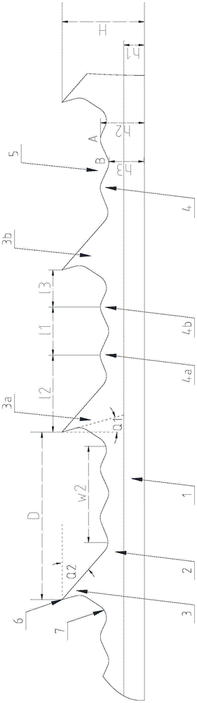 本实用新型公开了一种金属针布,该金属针布包括基部和齿部;在齿部上沿该齿部的长度方向设有多个齿;在任意相邻的两个齿的齿根之间的中间区域设有至少一个曲线型的凸起部。本实用新型通过在相邻的两个齿之间的中间区域设置至少一个凸起部,使得当纤维进入到该中间区域时,凸起部能够相对的给予纤维向上和向下的作用力,使得纤维在该部分区域内呈现高低起伏状,从而更加有效的去除纤维中混有的杂质,另外,相比于现有技术中纤维直接压入该中间区域(平直段)的结构形式,本实用新型能够明显降低对纤维的损伤。