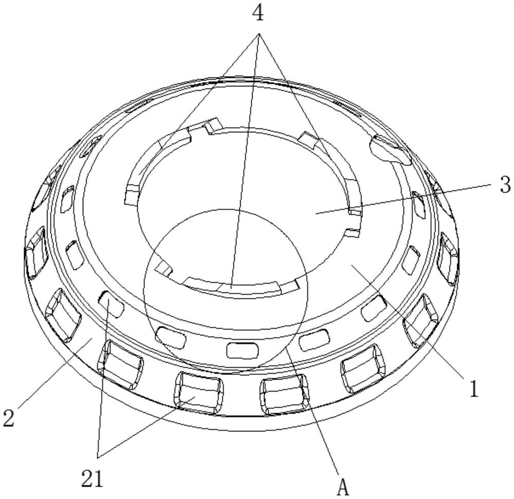 本实用新型涉及一种定子绝缘罩及其装配结构,其中定子绝缘罩具有罩体,罩体包括上平面,以及沿上平面的边缘向下延伸的侧围;上平面与侧围为一体件;所述上平面上设有定位通孔;所述定位通孔的边缘设有多个沿定位通孔的轴线圆周分布的卡装组件;所述卡装组件包括凹槽,凹槽沿定位通孔的边缘延伸;凹槽的底面上设有可供卡块轴向进入的缺口;凹槽的底面上还设有凸块,凸块的上端面靠近缺口的一端设有第一引导斜面,第一引导斜面的低端与缺口对应,凸块远离缺口的一端与凹槽远离缺口的一端之间形成可供卡块滑入的卡槽。同时配设上述定子绝缘罩的装配结构,能够根据需要调整定子绝缘罩的保护高度,大大提升定子绝缘罩的适配性。