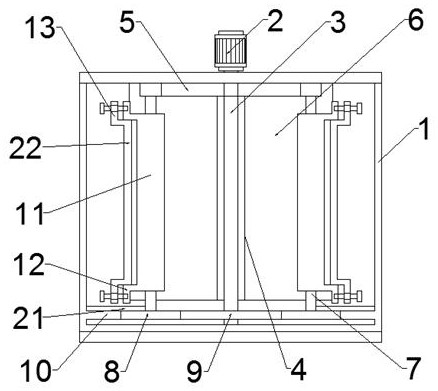 本实用新型公开了一种地板革生产用成品存放装置,包括筒体,所述筒体上壁面固定安装有电机,所述电机输出端连接有主动旋转轴,所述主动旋转轴侧壁连接有连接套,所述主动旋转轴底部活动连接于所述筒体内部下壁面,所述连接套顶部固定安装有三对连杆,所述拉门机构与所述筒体间设有固定机构。本实用新型涉及地板革生产技术领域,本装置结构紧凑,通过电机驱动主动旋转轴旋转,主动旋转轴旋转带动主动齿轮旋转,从动齿轮带动从动旋转轴绕主动旋转轴做行星旋转,并通过夹紧机构夹紧地板革一侧,通过行星旋转的方式使地板革在被带入进筒体的同时,绕从动旋转轴进行缠绕卷入,给人们带来了方便。