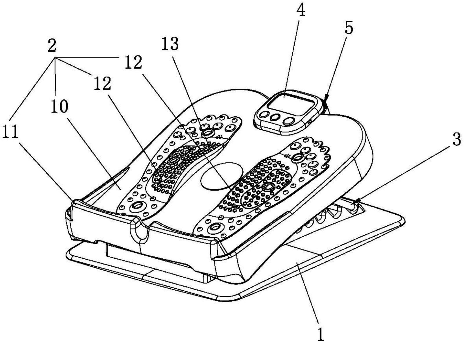 本实用新型涉及运动器材技术领域,尤其是指一种拉筋装置,包括底座、脚部支撑件、角度调节结构、拆装结构及电子表,所述脚部支撑件的一端与底座转动连接,所述脚部支撑件的另一端经由角度调节结构与底座连接,所述角度调节结构用于调节脚部支撑件的角度,所述脚部支撑件设置有安装腔,所述电子表经由拆装结构与安装腔可拆卸地连接。本实用新型的结构简单,将电子表集成在脚部支撑件上,便于使用者定时定量地进行拉筋运动,且电子表能够拆装,便于电子表的灵活使用,也便于电子表的拆装。