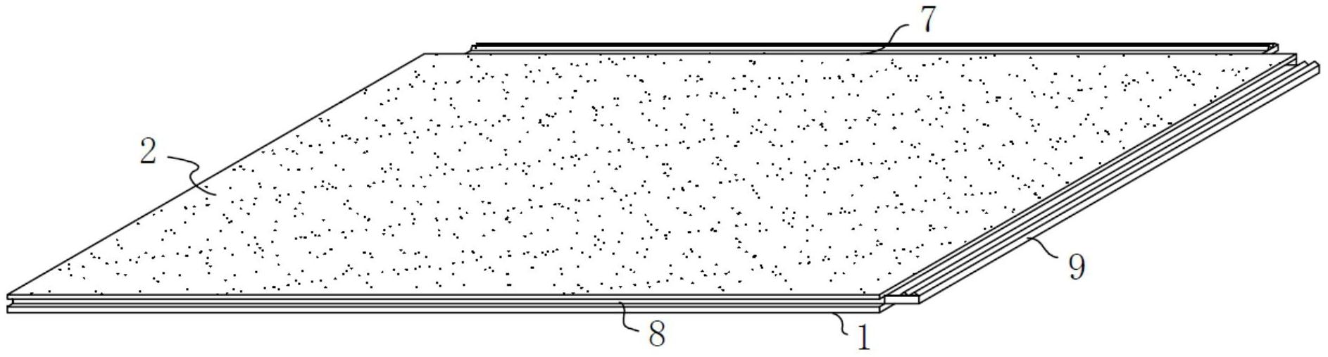 本实用新型公开了一种阻燃耐老化的人造草坪,包括草坪铺设基板以及人造草丝,人造草坪内部设置阻燃剂凹槽和石灰层,通过石灰层用于对人造草坪表面的水渍吸收,具有保持人造草坪主体干燥,阻燃剂凹槽用于对阻燃剂放置,增加人造草坪的阻燃效果;人造草丝通过贴合皮与草坪铺设基板的上顶面贴合,用于在人造草坪主体上表面的人造草丝磨损减少影响使用后,直接对贴合皮取下,更换人造草丝,降低对人造草坪主体使用维护成本;人造草坪主体之间通过插片以及贴合槽配合,在需要对人造草坪主体底面清理时,可以对人造草坪主体之间拆除清理后再次拼接,使用方便。