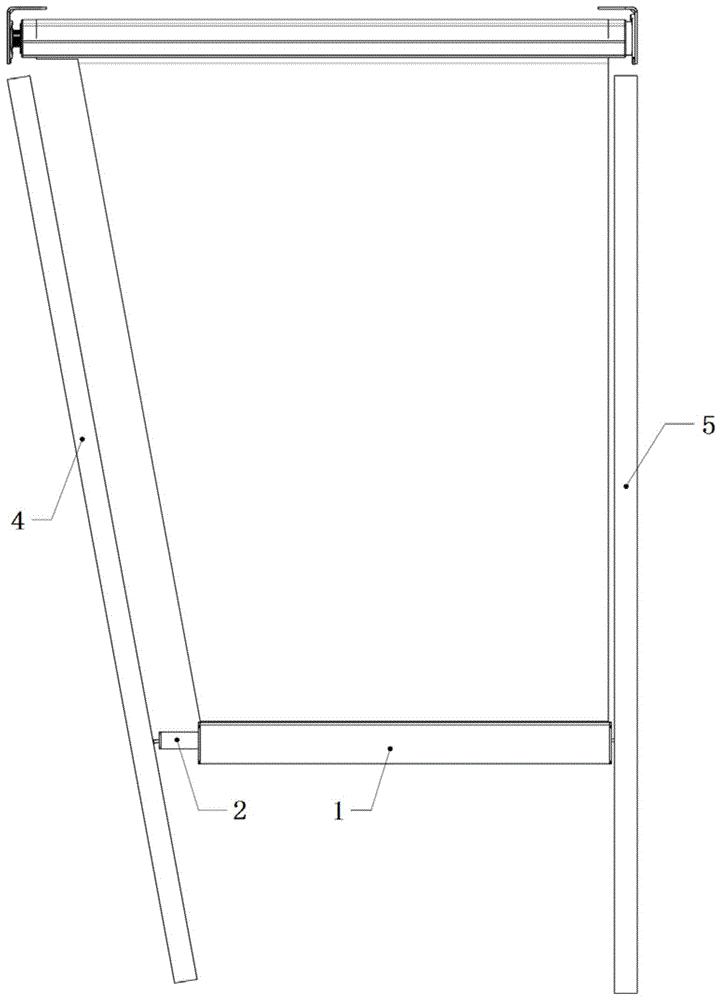 本实用新型公开了一种建筑遮阳卷帘可伸缩底槽系统,其包括卷帘底槽(1)、伸缩槽(2)、滑轮I(3)、滑轮II(4)、滑轨(5)、滑动轴承(6);所述卷帘底槽(1)一端为固定端、设置有滑轮II(4),与滑轨(5)之间通过滑轮II(4)滑动连接,另一端为伸缩端;所述伸缩槽(2)一端从卷帘底槽(1)的伸缩端伸入其内腔、另一端设置有滑轮I(3),与滑轨(5)之间通过滑轮I(3)滑动连接;所述伸缩槽(2)与卷帘底槽(1)之间通过滑动轴承(6)连接。该卷帘底槽置于帘布下端,伸缩槽在卷帘底槽内滑动,滑轮沿滑轨自由滑动,实现了帘布与滑轨始终平行。本实用新型通过伸缩槽、卷帘底槽、滑轨的配合,解决了非矩形结构幕墙的卷帘遮阳问题。