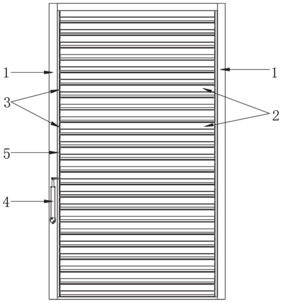 本实用新型提供了一种可翻转高强度遮阳防雨百叶,涉及百叶窗帘技术领域。它包括框架、叶片和连接组件,叶片的两端各通过一个连接组件与框架活动连接,使叶片能够相对框架转动,实现叶片翻转角度的调节,连接组件包括转轴和护套,每个连接组件均包括一个转轴两个护套,转轴的两端各套接有一个护套,两个护套在转轴上形成对称设置,两个护套分别与叶片和框架活动连接,转轴不直接与叶片和框架接触,而是通过两个不同的护套分别与叶片和框架相接触,共同分担转动产生的磨损,护套采用POM塑料制成,POM塑料具有高硬度、高钢性和高耐磨的特性,护套在与转轴、叶片和框架之间进行相对转动时更加静音,同时能够有效减少磨损,延长使用寿命。