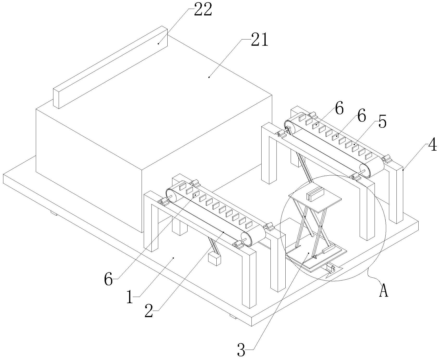 本实用新型涉及一种公路防护栏安装工具,包括基板、位于基板表面的输送机及升降机,输送机包括机架及设于机架上的输送带,输送带的表面平行地设置有多个间隔板,升降机可滑动地设置于基板的表面,升降机的升降台上设置有定位座,定位座的表面设有定位槽,定位槽从定位座的一端面延伸至另一端面,基板的表面还设置有驱动升降座沿基板表面滑槽或滑轨移动的升降座驱动装置。本实用新型的公路防护栏安装工具能够辅助操作人员连接护栏板及防阻块以提高其安装效率、降低劳动强度。