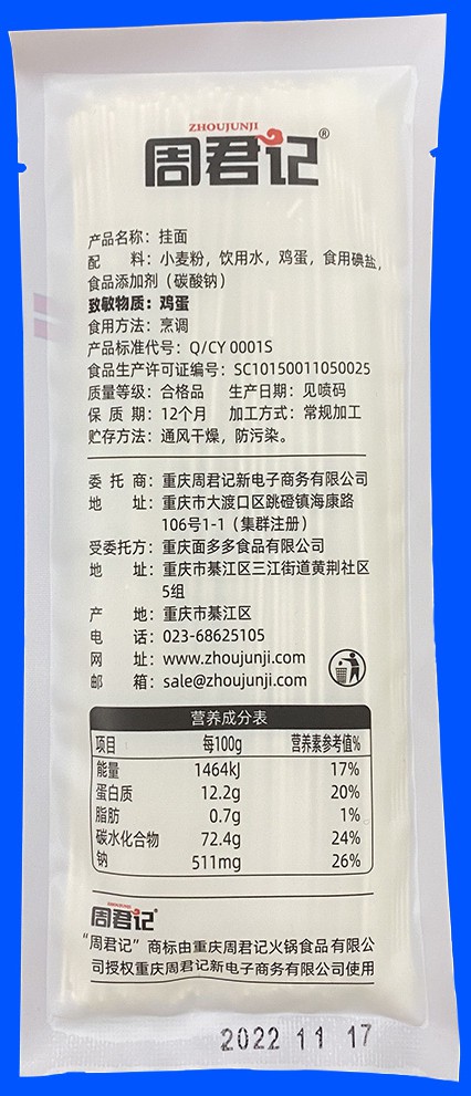 | 申请人名称 | 重庆周君记火锅食品有限公司 |