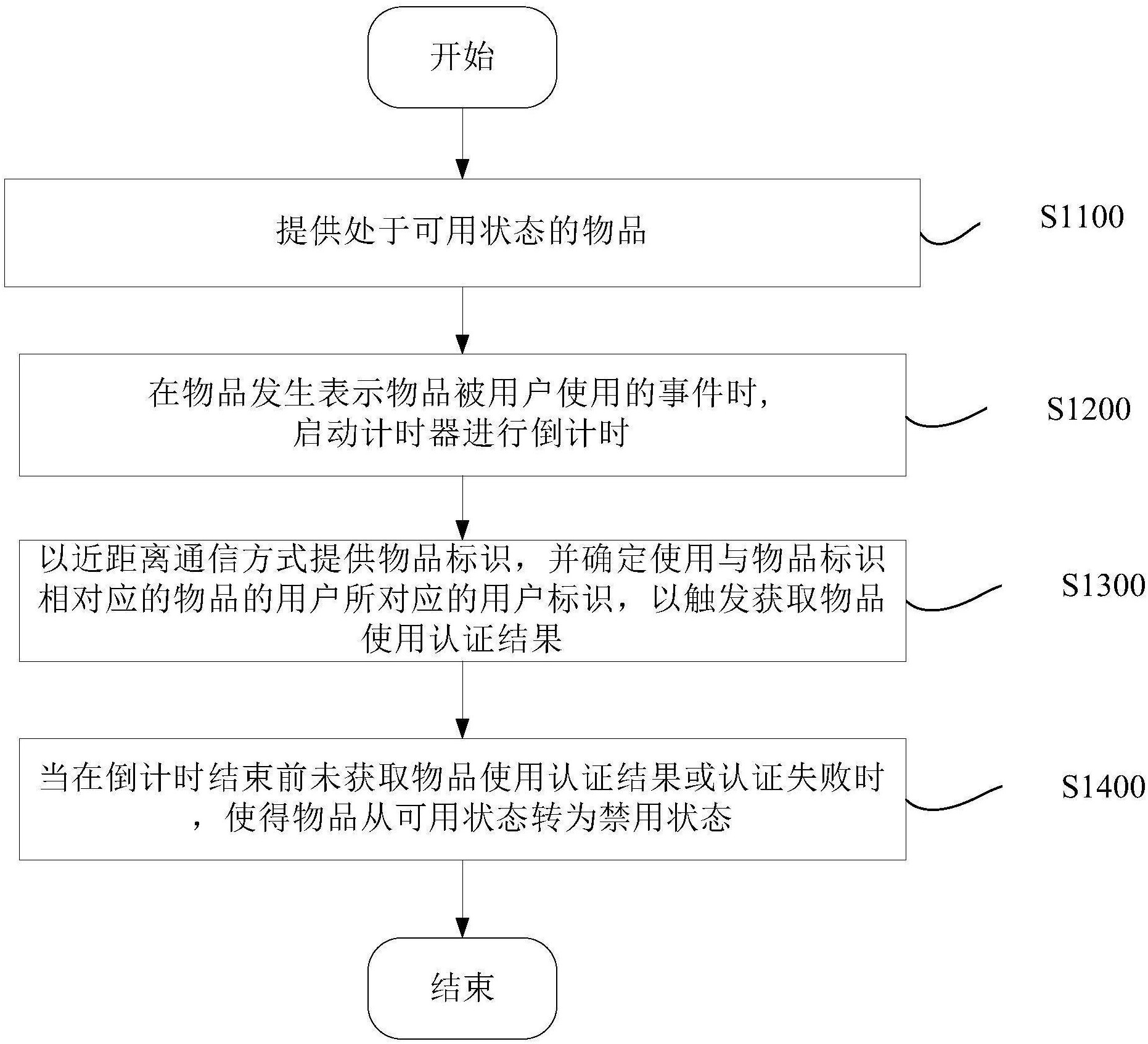 本发明公开了一种物品使用控制方法、设备、系统及物品。该方法包括:提供处于可用状态的物品;在物品发生表示物品被用户使用的事件时,启动计时器进行倒计时;以近距离通信方式提供物品标识,并确定使用与物品标识相对应的物品的用户所对应的用户标识,以触发获取物品使用认证结果;当在倒计时结束前未获取物品使用认证结果或认证失败时,使得物品从可用状态转为禁用状态。根据本发明,可以使得用户可以在执行认证操作前就能使用物品。并且,在用户使用物品过程中,以不令用户感知的方式完成物品使用认证。提升用户体验。