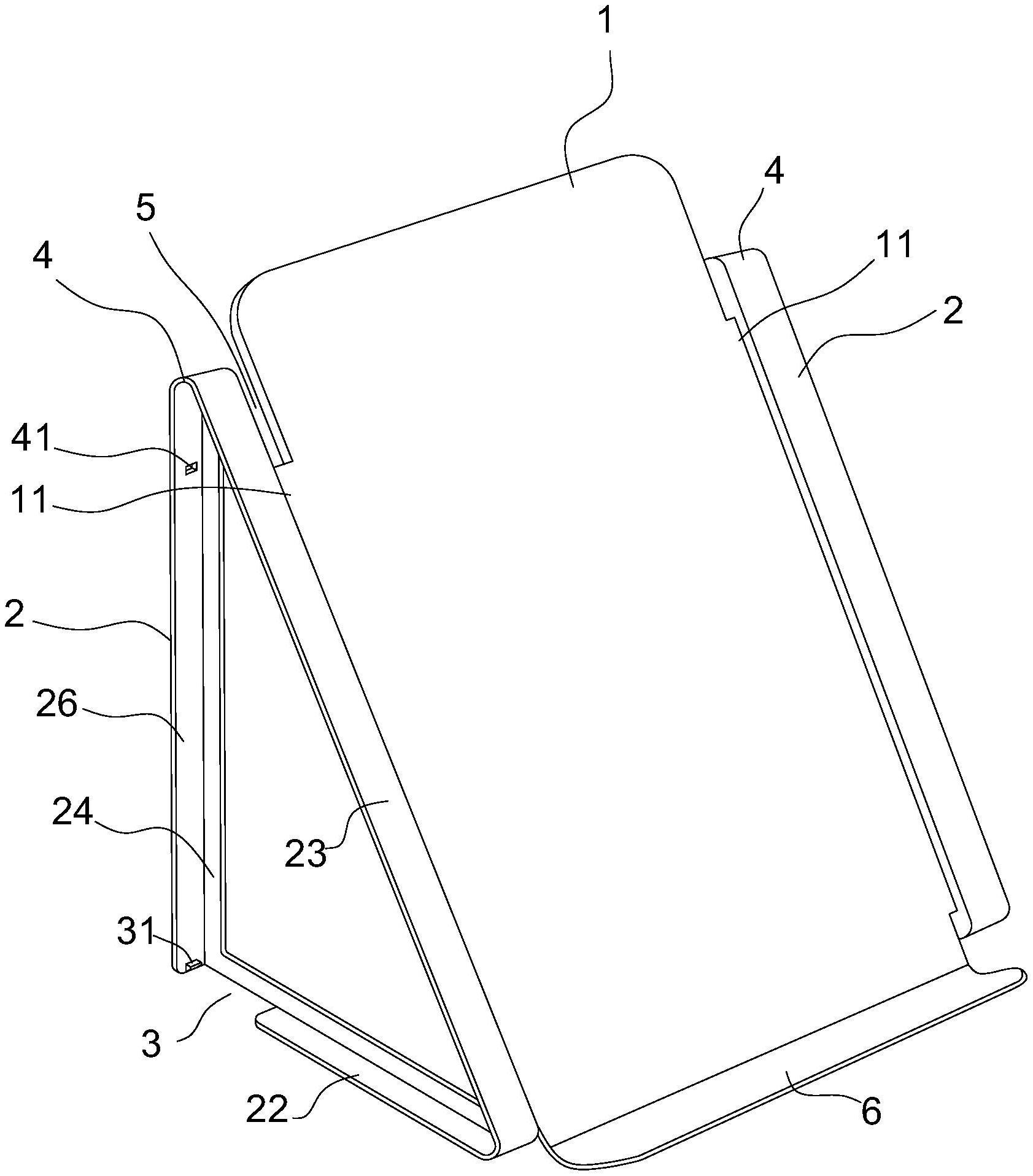本实用新型公开了一种鞋架,包括至少一组架本体,所述架本体包括托板、对称设置在托板两侧上的支撑架,托板倾斜设置在支撑架上,在支撑架的底部设有第一缺口,在支撑架的顶部设有与第一缺口相适配的插入部,以使两组架本体之间通过插入部插入第一缺口中,实现两组架本体上下堆叠并固定,在托板的底部设有承托边。与现有技术相比,通过在支撑架的底部设置第一缺口,在支撑架的顶部设置插入部,从而在堆叠时通过插入部插入第一缺口中以实现鞋架的堆叠,而将托板倾斜设置,能够减小鞋架的占地面积。