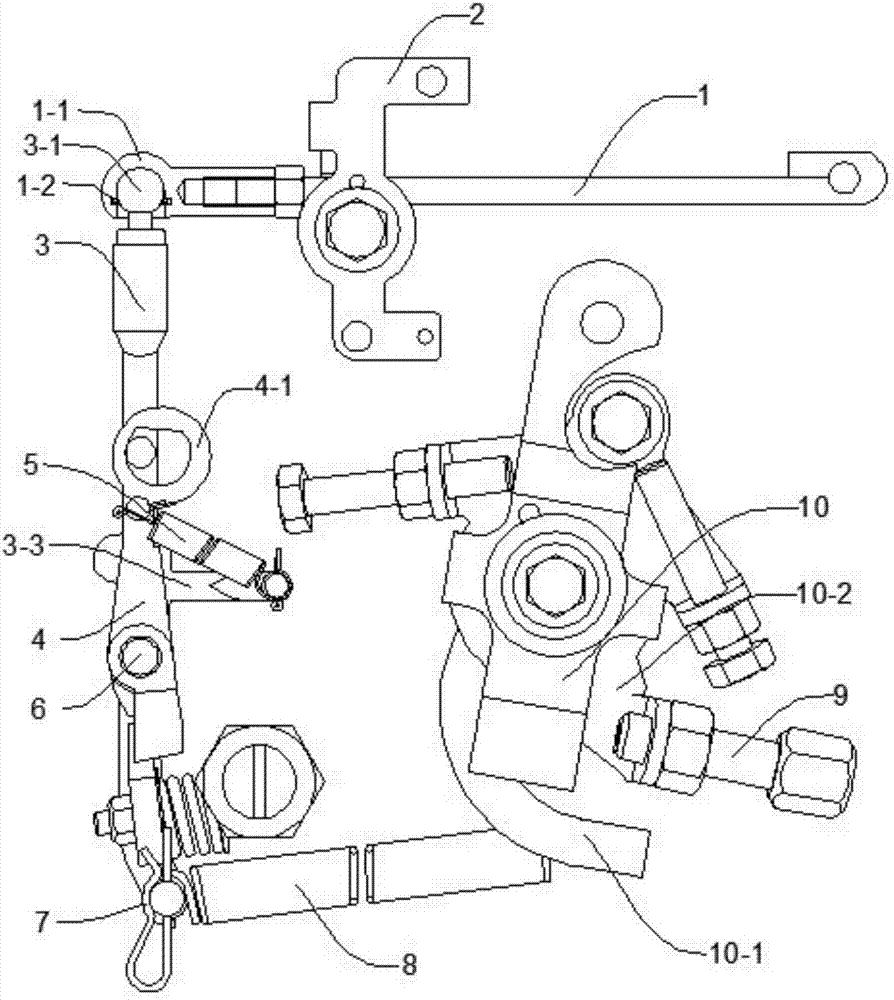 本实用新型涉及到一种柴油机调速拨叉杠杆组件,包括拉杆;所述拉杆通过拨指与停车摇臂连接,所述拉杆通过碗型球头与球头连接,所述球头通过钢丝挡圈与拨叉连接,所述拨叉通过拉环与调速杠杆连接,所述拨叉通过杠杆轴定位连接。采用上述结构后,本实用新型柴油机调速拨叉杠杆组件与现有技术相比较,本实用新型通过拨叉的位置变化从而进一步的进行装置的速度调节。整个装置通过控制停车摇臂来对调速器拨叉进行上下位移,最终完成速度的控制。