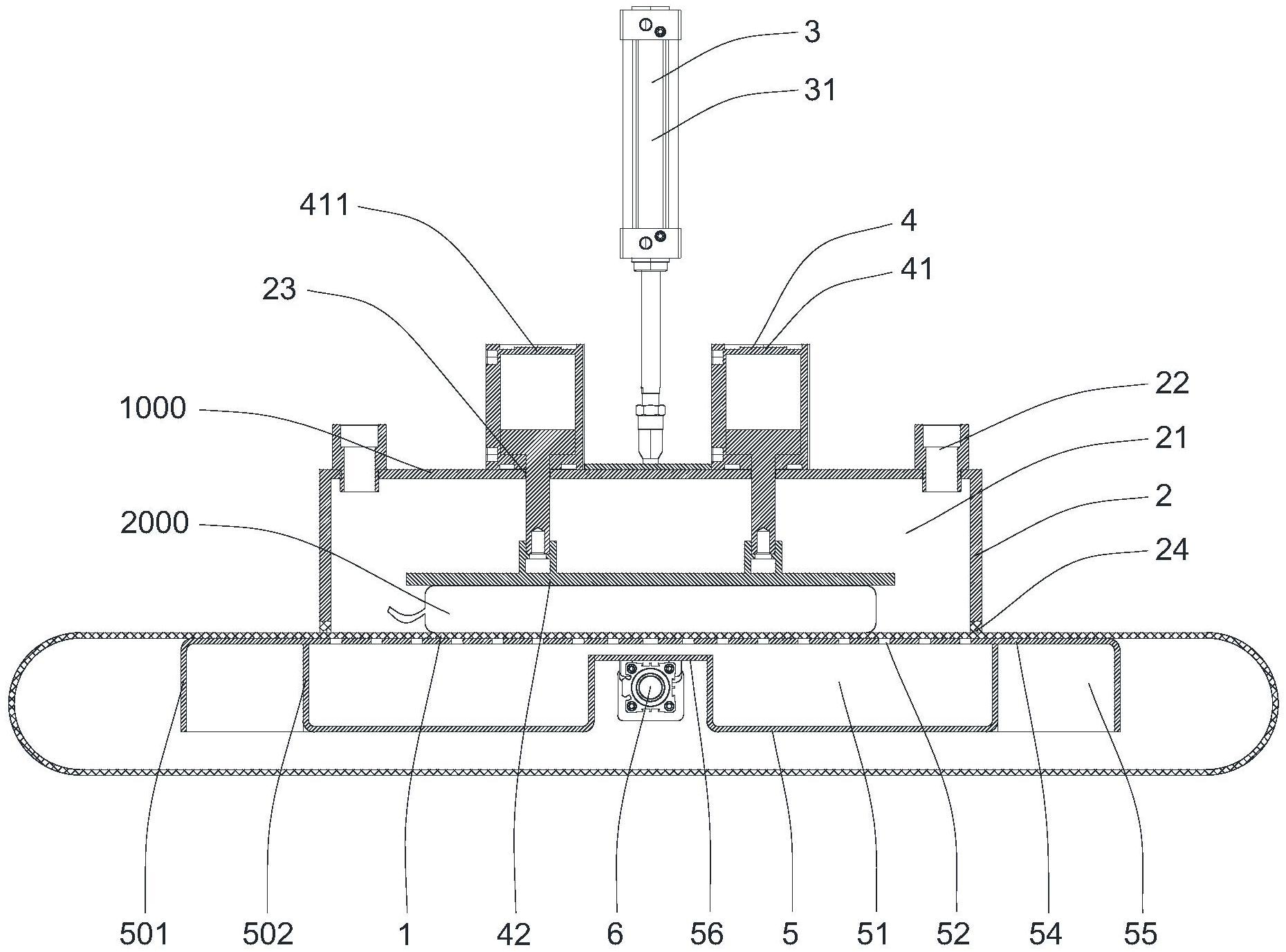 本实用新型公开了一种防变形的产品包装抽真空整形装置及自动生产线,其中,所述防变形的产品包装抽真空整形装置包括输送带、设于输送带上方的上壳体、用于驱动上壳体升降移动的升降机构、用于下压输送带上的待包装产品的整形机构,以及设于输送带下方的下壳体;上壳体用于扣合至输送带上并与输送带共同围合成第一腔体,下壳体抵靠输送带的底面并设有第二腔体,下壳体的顶面布设有多个吸附孔,上壳体设有第一气管接头,下壳体设有第二气管接头,第一、第二气管接头均用于与真空泵连接。本实用新型提供的防变形的产品包装抽真空整形装置能够将输送带牢牢吸附在下壳体的顶面上,使输送带保持平整,从而避免产品包装发生变形,提升包装效果。