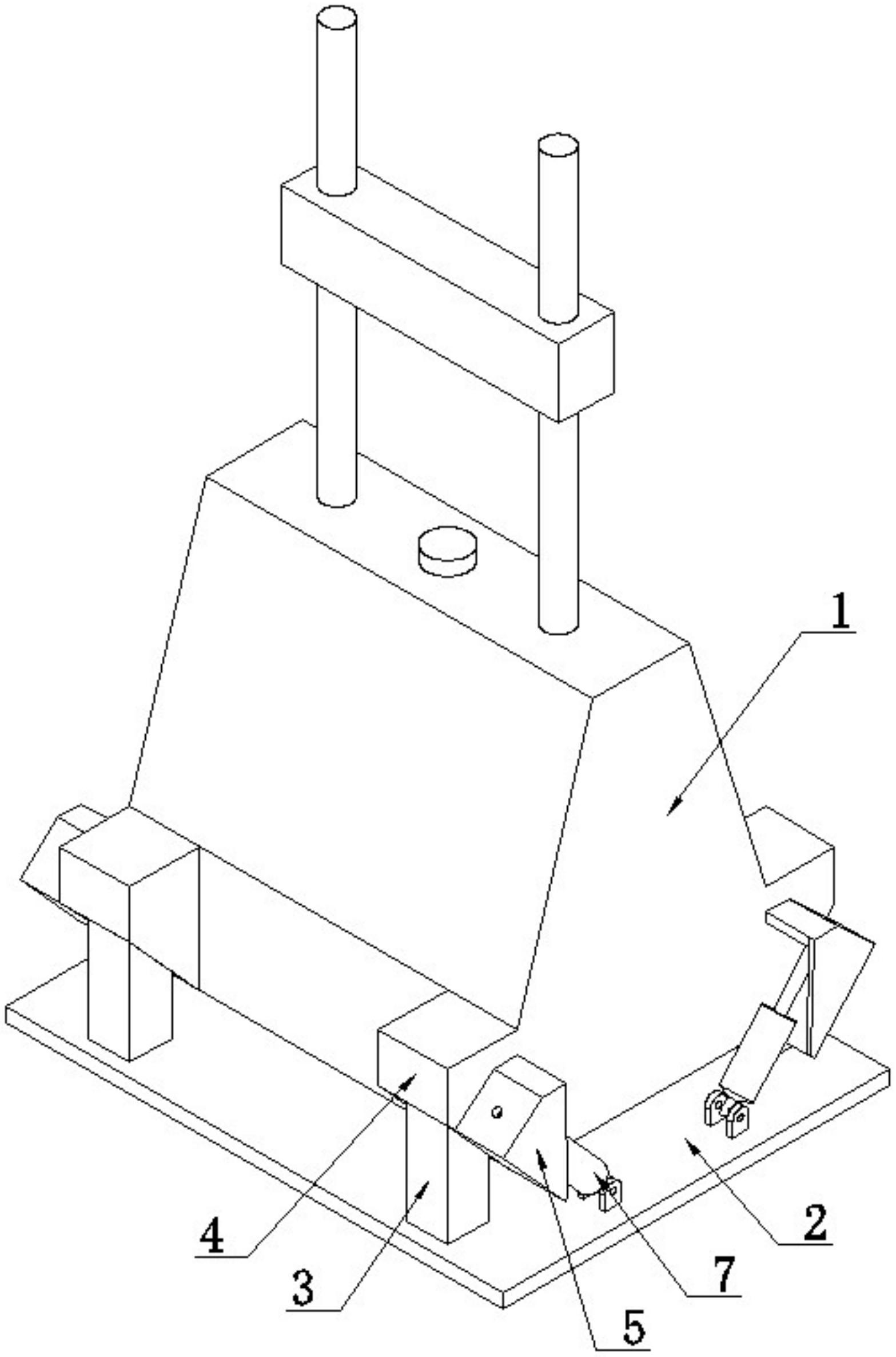 本实用新型涉及一种减振器示功测试设备,包括设备主体,所述设备主体下部设置有底座,所述底座呈矩形平板状,底座四角处均竖直设置有定位柱,设备主体下部四角处均固定设置有定位壳和缓冲壳,所述定位壳呈下端开口的壳体状且与定位柱对应设置,所述定位柱上部纵向滑动套合于定位壳内,定位壳上端与定位柱上端之间设置有气囊,所述缓冲壳内设置有液压缸,所述液压缸的伸缩端与缓冲壳上端铰接,液压缸的固定端向内倾斜且与底座铰接。本实用新型的目的在于解决或至少减轻测试时测试设备会发生振动的问题,提供一种减振器示功测试设备。